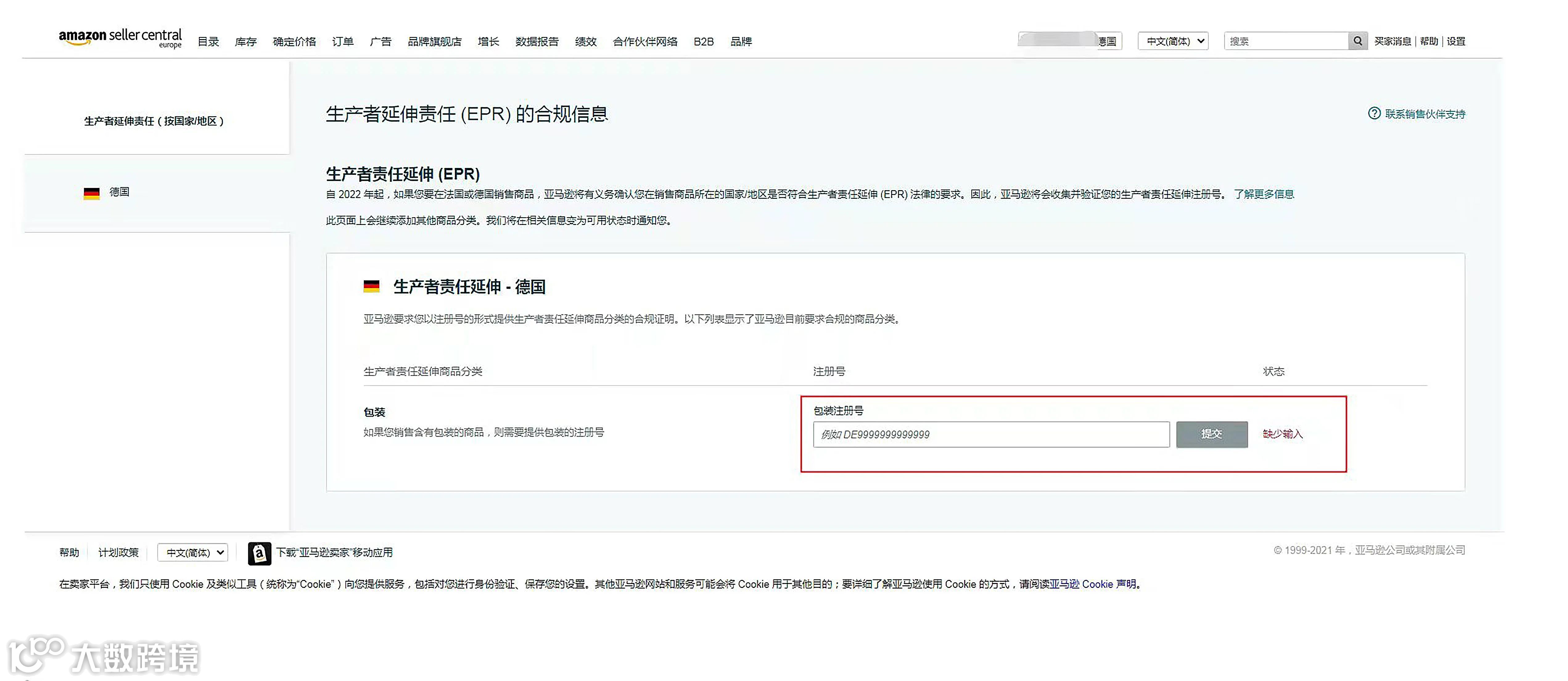 亚马逊目前只开放了EPR德国包装法注册号的上传链接,其他国家EPR类目链接将陆续开放。