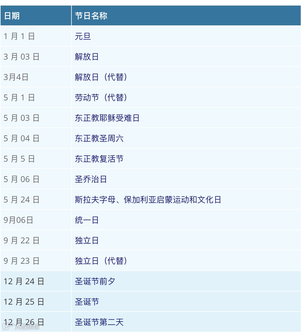 三、保加利亚假期设置