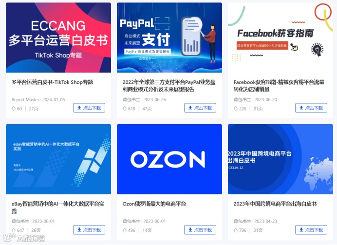 点击大数跨境研报板块:跨境报告_跨境贸易研究,跨境人的智库平台_大数跨境|跨境从业者专属的媒体平台 (10100.com)