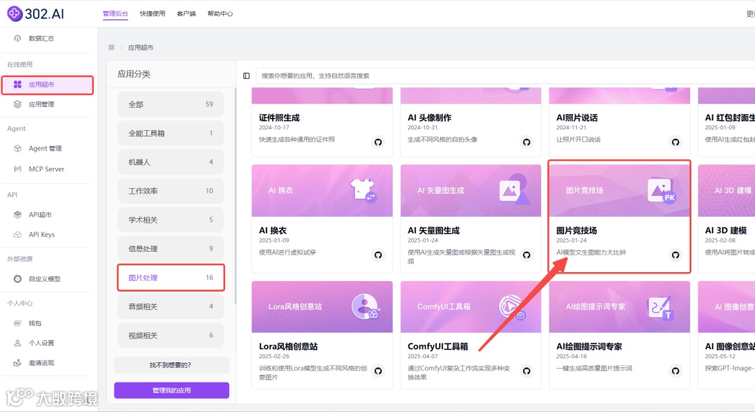 (1)打开工具:应用超市→图片处理→图片竞技场。