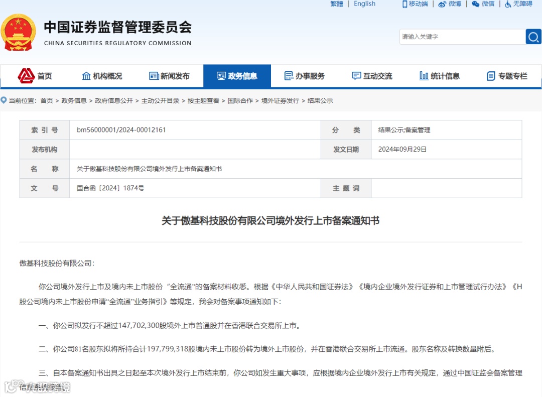 9月29日,据中国证监会公告,傲基科技准备发行不超过147,702,300股境外上市普通股,并在港交所上市。