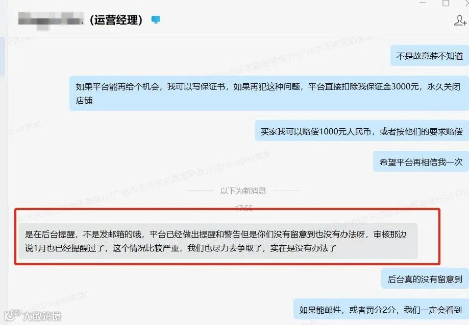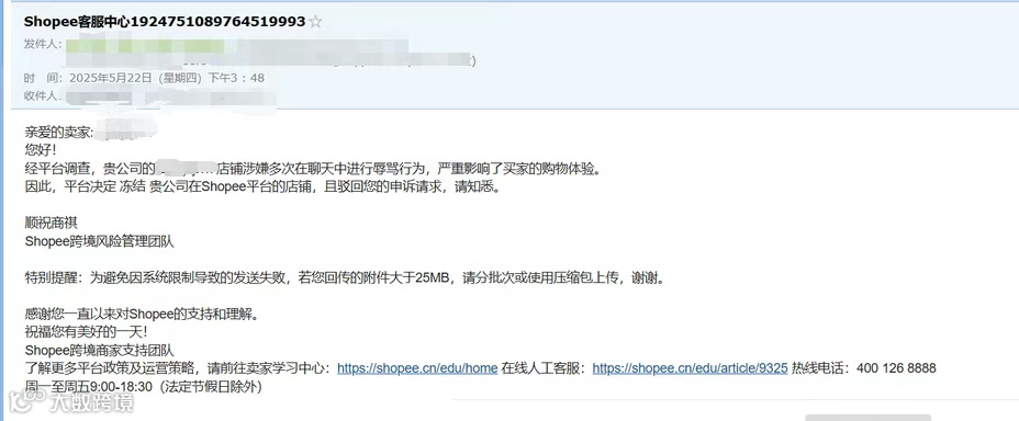 根据平台5月22日的正式通知,店铺违规行为可追溯至1月和4月的两次"言语不当",5月因"重复违规"直接触发永久冻结机制。