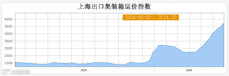据最新的6月28日上海出口集装箱运价指数(SCFI)显示,周涨幅高达6.87%达到了3714.32点,并已连续12周上涨。7月各大船司最新运价涨幅如下: