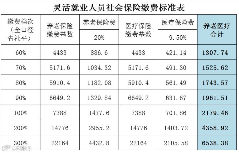 灵活就业人员社会保险缴费标准参考表(2026年1月起)