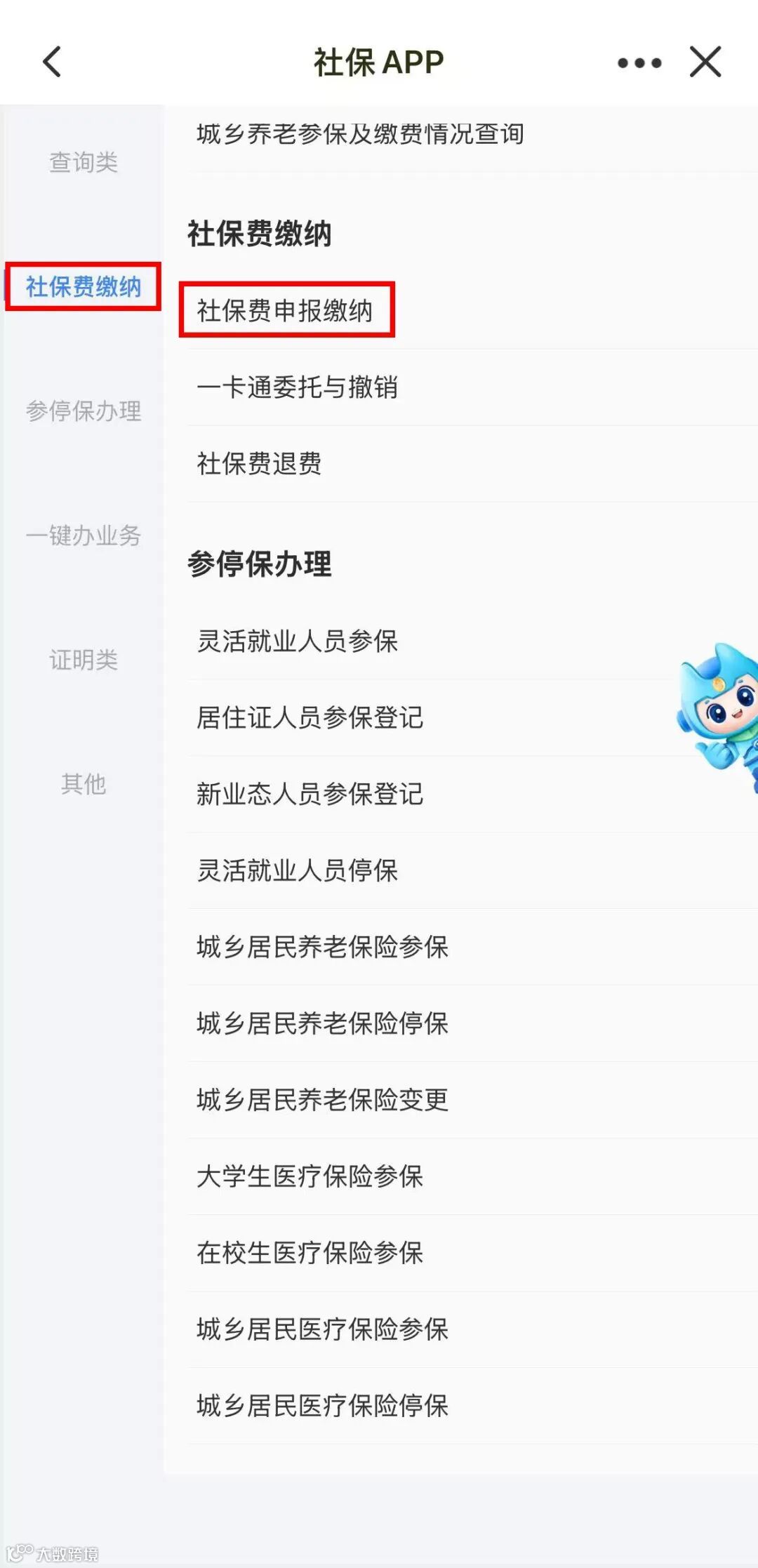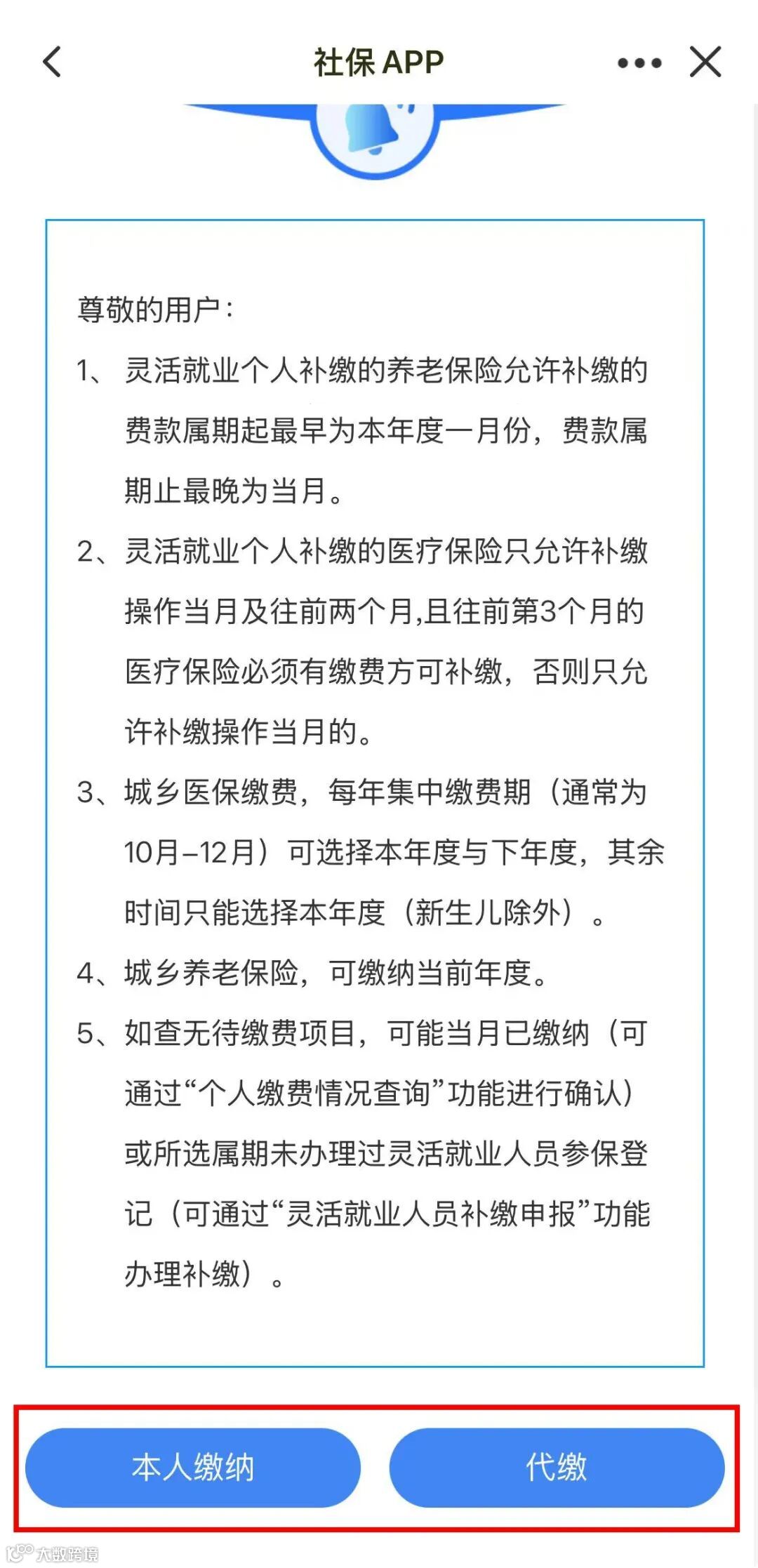 在社保费缴纳模块中点击【社保费申报缴纳】-【灵活就业人员社保费申报缴纳】,可自行或代他人缴纳社保费。
