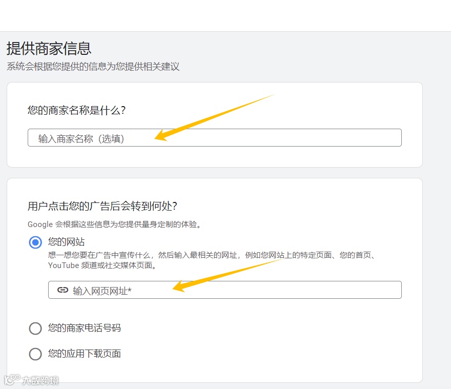 填写商家名称,根据自己的推广需求选择是输入网址还是应用,然后提交审核。