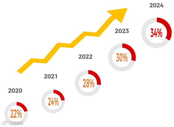 中国厂商RPG手游在全球市场表现出色。虽然全球RPG游戏收入在2022年和2024年出现下滑,但中国产品的收入逆势增长,并于2024年突破60亿美元,市场份额达34%。