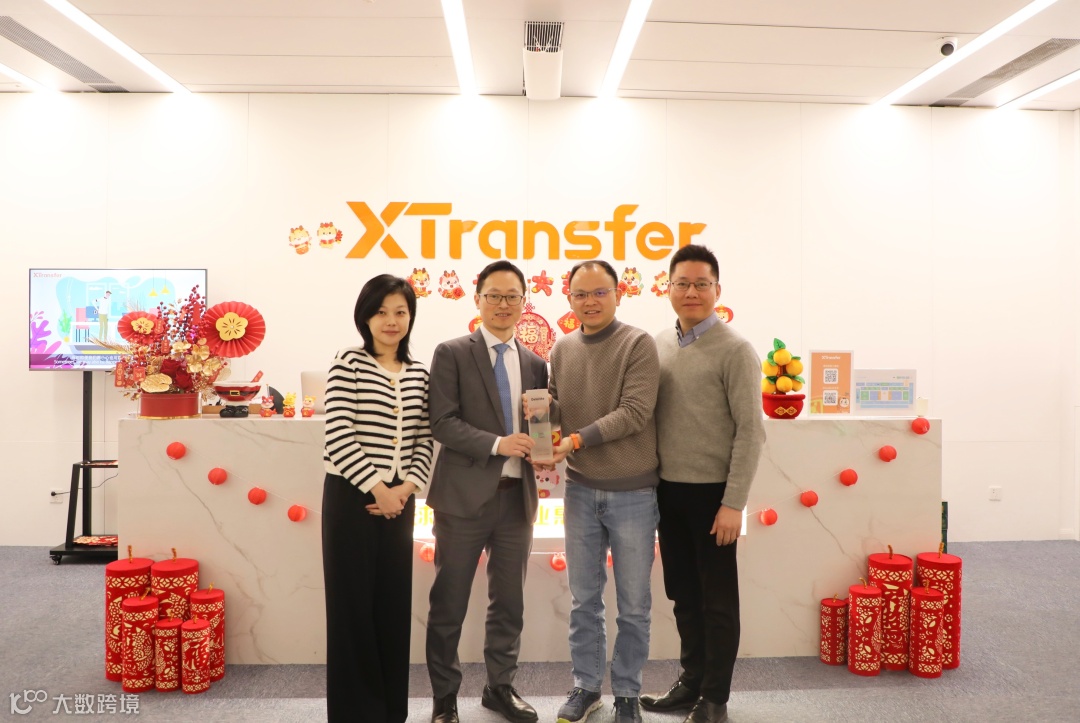 从左到右分别为:德勤审计服务经理戴宇彤、德勤中国金融服务合伙人张华、XTransfer创始人兼CEO邓国标、XTransfer联合创始人兼CFO孙霄谷