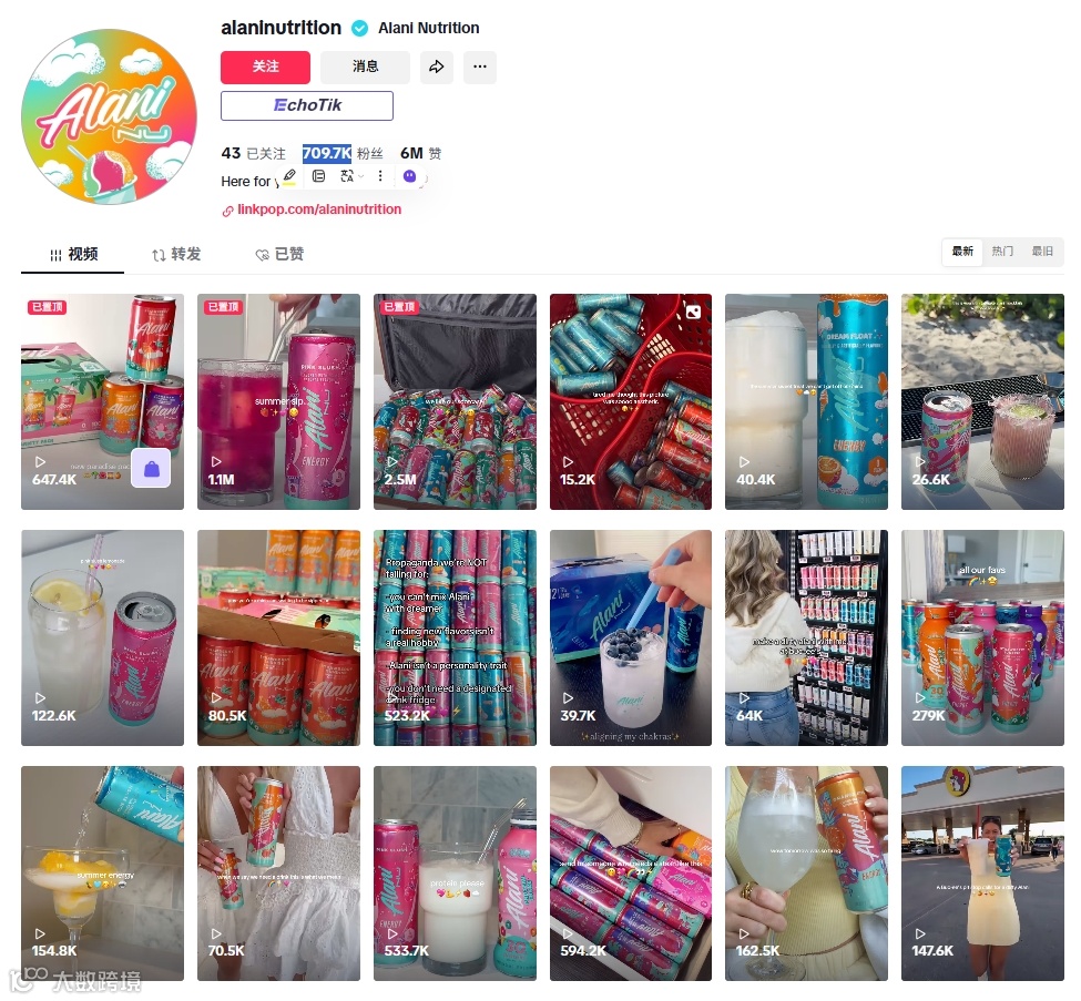 总体而言,Alani Nu在TikTok平台上的表现体现了新兴品牌如何通过精准定位、内容营销和社群建设,在传统行业中实现突破式增长的成功案例。
