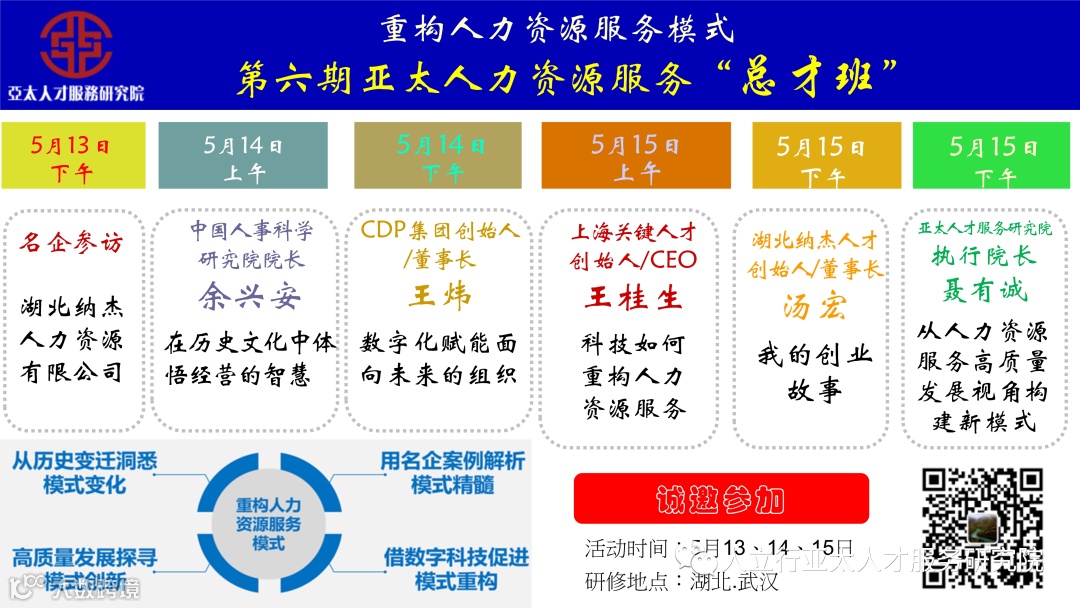 【5月武汉】第六期亚太人力资源服务“总才班”报名中