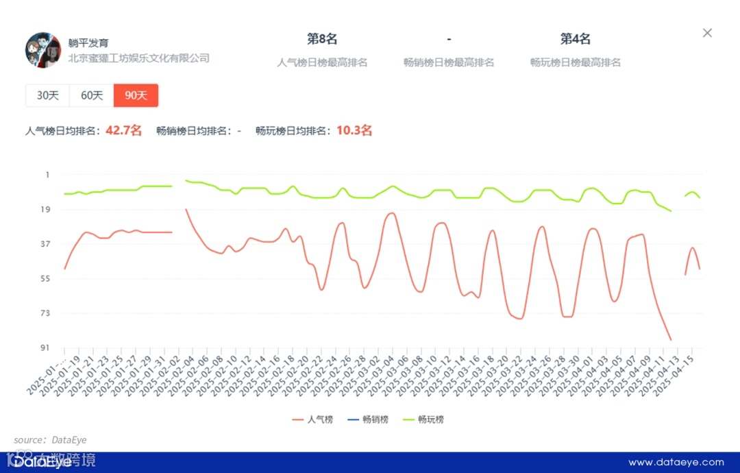 虽然整体排名不算突出,但该产品的上线背景值得关注。此前该游戏曾在2024年8月短暂进入榜单,但未引发广泛关注。此次重回榜单,也标志着其作为非新品的二次“翻红”。