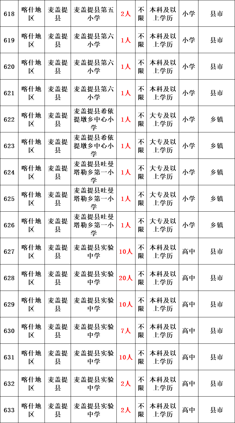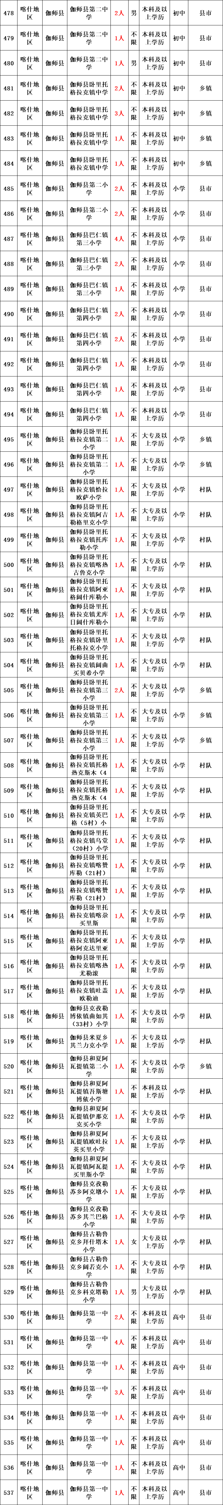 附件:1. 2021年喀什地区面向社会公开招聘中小学和幼儿园教师岗位表