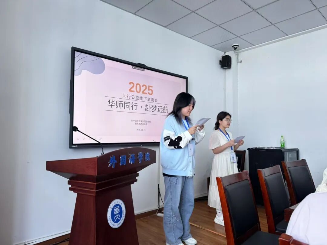 5月11日,外国语学院青年志愿者协会(以下简称“外院青协”)组织召开同行公益线下见面会,来自华中师范大学、武汉大学的志愿者围绕线上支教实践、乡村教育困境等议题展开深入交流。此次见面会不仅是教学经验的分享平台,更是一次教育理念的碰撞与升华。未来,外院青协将以更专业的姿态践行“心与心陪伴”的助学理念,为乡村教育发展持续注入青春力量。