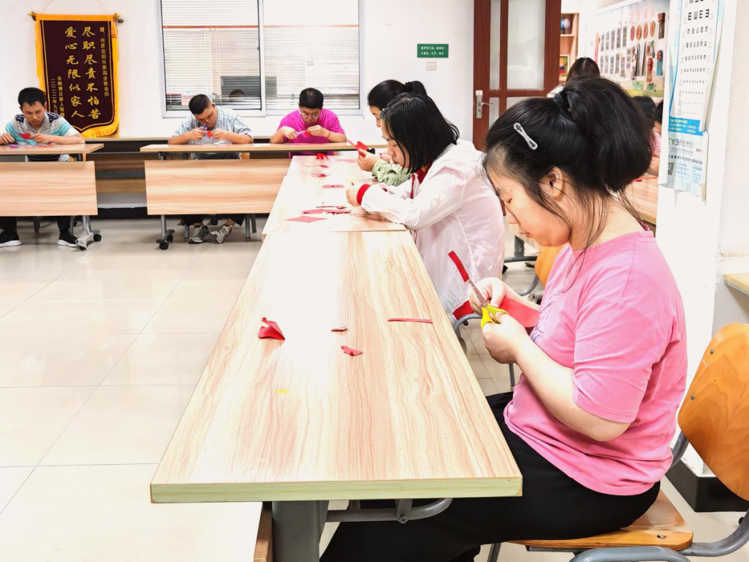 5月7日,信息管理学院青年志愿者协会(以下简称“信管青协”)走进中南路阳光家园,开展“纸艺传情,志愿暖阳”活动。志愿者们以巧手传技艺、以红纸递温情,为学员们带来剪纸手工课。折纸、描线、开剪,志愿者一一示范基础技法,并协助学员们完成各类作品。