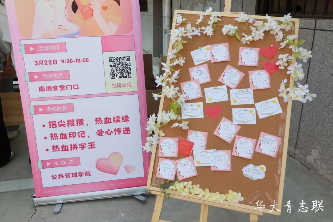 在活动当天,公管青协精心打造双板块互动:“热血印记,爱心传递”创作区和“热血拼字王”挑战区,以趣味互动传递献血知识,借情感共鸣激发公益热情,实现科普认知与生命关怀的双向提升。