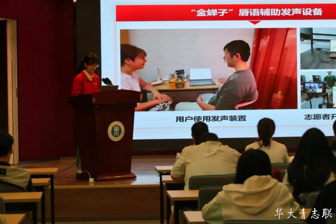 紧接着,华中科技大学“‘AI助聋,让爱发声’志愿服务项目”负责人高雨静通过案例讲述与经验分享,展现科技赋能公益的无限可能。“AI助聋”项目联合多学科力量,自主研发“金蝉子”AI程序辅助训练系统,帮助听障人士开口说话。经调研发现,项目实施效果显著,成功实现一个人带动一群人的学习模式,形成具有示范价值的可持续服务效应。高雨静指出,在项目培育过程中要不怕困难,迎难而上,经过不断地识别、总结、分析、反思,去实现公益项目的落地。