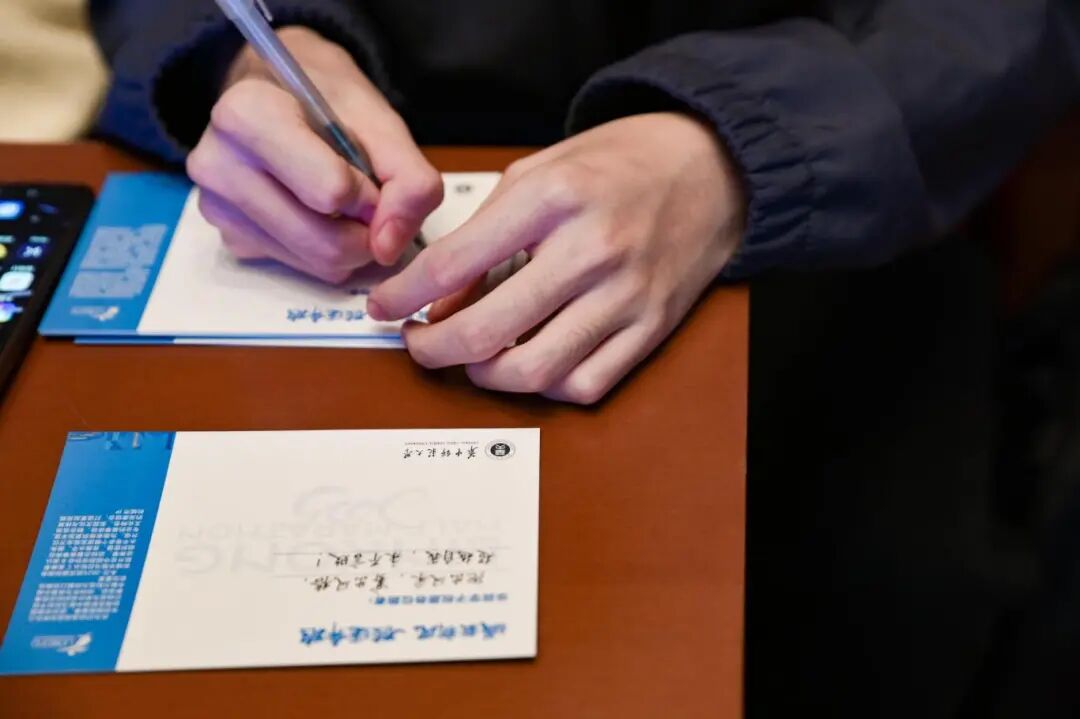 培训现场,除了专业技能的传授,更洋溢着浓浓的人文关怀。在培训间隙,每位志愿者都写下了一封封明信片,用真挚的语言表达华师学子对各位跑者的祝福和鼓励。“坚持就是胜利!”“武汉欢迎你!”“愿你跑出最好的自己!”……字里行间,饱含着志愿者们对赛事的热忱和对跑者的关怀。这些承载着祝福的明信片将在赛事当天送到每位参赛选手手中,为他们注入前行的动力。