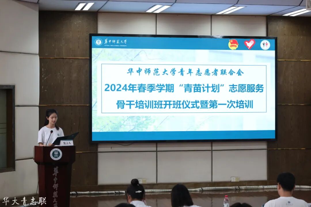 5月18日下午,华中师范大学2024年“青苗计划”志愿服务骨干培训班开班仪式暨第一次培训于九号楼一楼报告厅顺利开展。武汉理工大学马克思主义学院副教授王石径、华中师范大学团委(以下简称“校团委”)宣传部部长、志愿服务部部长卢俊霖以及华中师范大学青年志愿者联合会(以下简称“青志联”)指导老师李瑞浩出席本次开班仪式,“青苗计划”志愿服务骨干培训班全体学员参与此次培训。本次培训由青志联志愿服务评估和培训中心志愿者助理李宁宁主持。