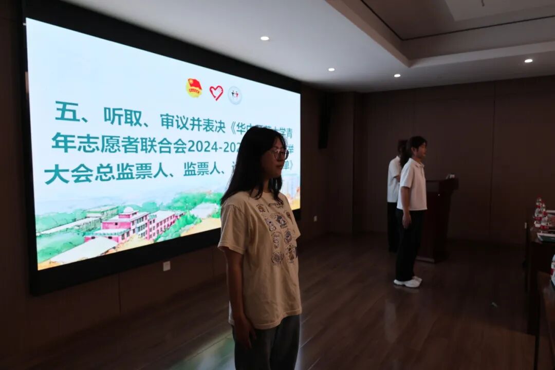在正式选举前,大会依次听取审议并表决通过了《华中师范大学第十二届青年志愿者联合会主席团选举办法(草案)》《华中师范大学第十二届青年志愿者联合会主席团候选人建议名单》《华中师范大学青年志愿者联合会2024-2025年度换届选举大会总监票人、监票人、计票人建议名单》,使参会成员对选举要求、选举方法、计票规则有了清晰了解,确保选举过程公平、公正、公开。