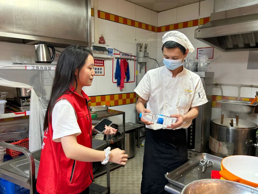 经过前期准备,活动共筹集了300元预算资金用来购买矿泉水。组员分为5队,分批次、分时段在华中师范大学各食堂、各学生宿舍、各校门、各教学楼值班室为厨师、宿管、保洁、保安、门卫、清洁工分发矿泉水。