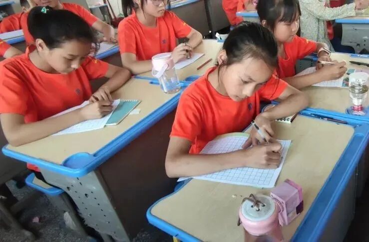 图为学生们认真练字