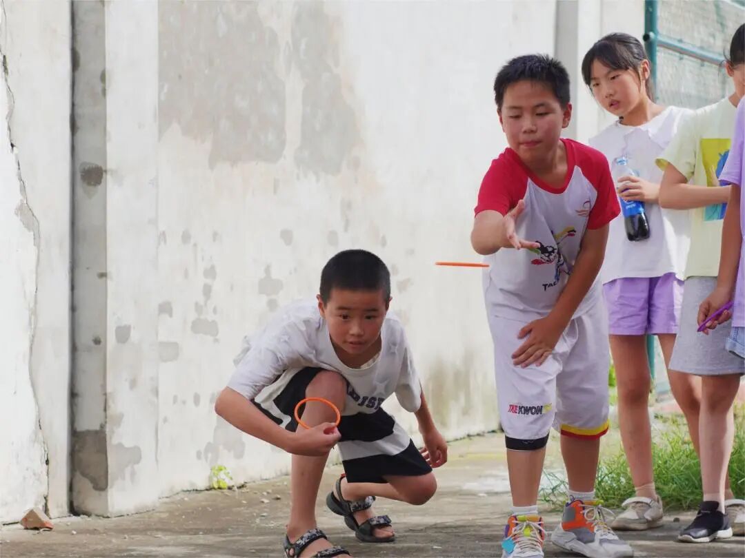 各小组根据地图争分夺秒地进行户外活动。在支教队老师的帮助下,同学们通过“套圈井字棋”游戏锻炼小肌肉群,解锁各种新式套圈姿势,在一次次套中时欢呼雀跃。在“指定姿势合影”游戏中,他们尽情感知摆pose的快乐,享受双脚离地的快感。
