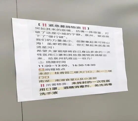 “支援泉州”紧急物资捐募活动