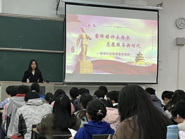 数学与统计学学院青年志愿者协会利用晚点名时间进行了雷锋月宣讲活动,两位优秀志愿者为大家分享了自己的志愿经历,收获和感想,加深了同学们对雷锋精神的认识与理解,鼓励同学们加入到志愿服务者的队伍中。