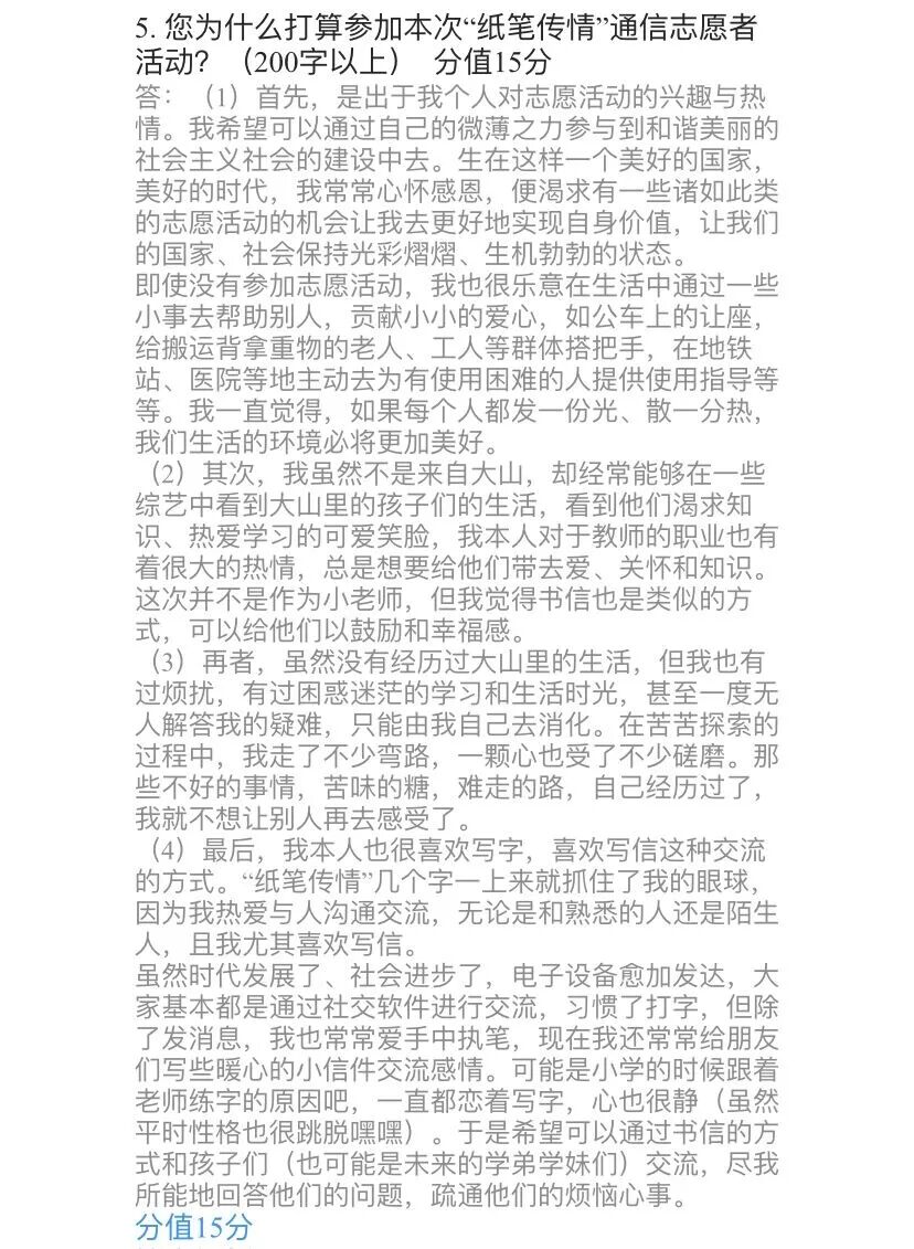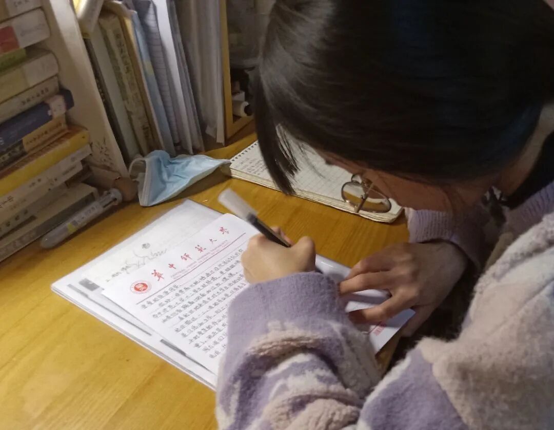 2021年10月20日,华中师范大学研究生支教团贵州分队发起了“寄梦华师”书信交流活动,书信既承载了孩子们对大山外面世界的期许与向往,也勾连了祖国中西部跳跃的心。用笔描绘青春模样,书写无限可能。华中师范大学青年志愿者联合会(以下简称“青志联”)随后在全校范围内招募志愿者,积极组织开展“纸笔传情”通信志愿服务活动。志愿者为贵州省余庆县他山中学和紫云自治县四大寨民族中学的孩子们,写下饱含关切与深情的回信。信件于15日寄出,并于17日抵达目的地。