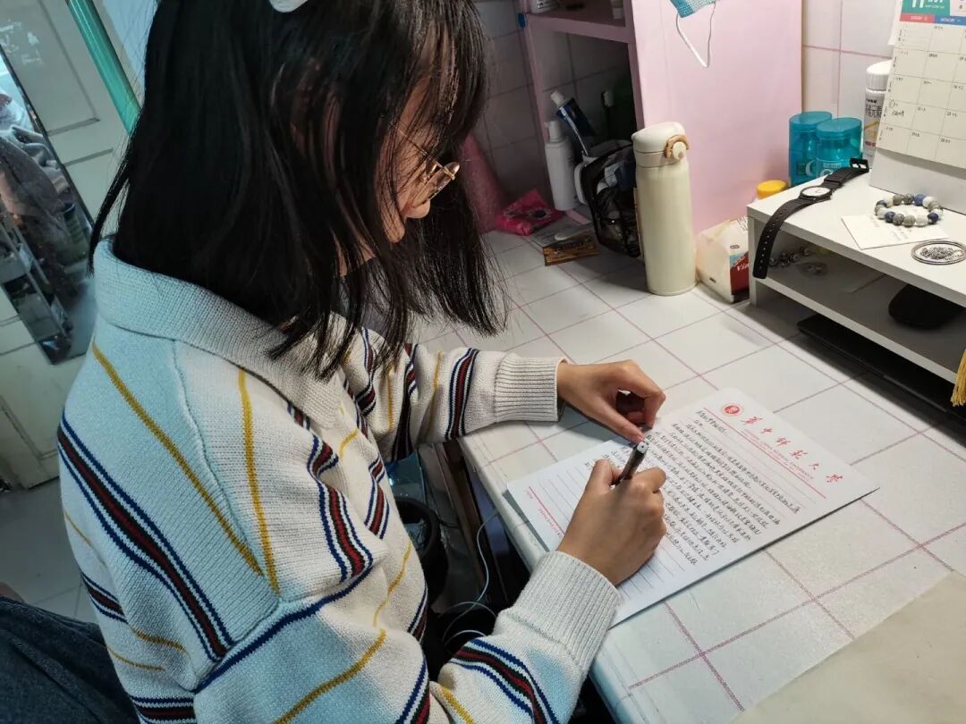 培训过后,志愿者都拿到了各自对应的信件,并积极地根据培训时强调的重点内容和孩子们来信的具体内容提笔回信。在写信的过程中,志愿者认真构思,在信中与孩子们展开了更深入细致的交谈,将真挚的情感融入字里行间。