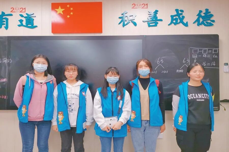 服务过程中,难免会遇到调皮的小朋友,志愿者耐心地与小朋友交谈,及时维护教室的秩序。在下课前五分钟,志愿者组织小朋友们对所在学习区域做好清洁,检查合格后4名志愿者带领小朋友们有序到达学校门口,将他们交付家长手中,保障小朋友们的安全。同时,其他的志愿者在教室打扫卫生,关好灯、空调等。随后,志愿者在教学楼下集合进行合影,将志愿者马甲折叠好交还给保安室。至此,本次志愿活动圆满结束。