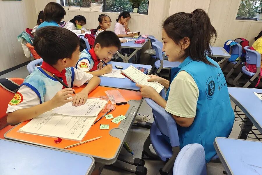 志愿者为小朋友答疑解惑