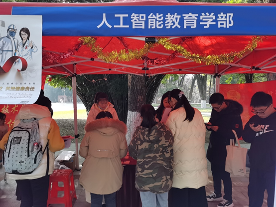 2020年12月5日是第35个国际志愿者日,人工智能教育学部青年志愿者协会参加了校团委和校青年志愿者联合会组织开展的志愿服务体验日暨志愿服务成果交流展活动,并以“战疫防艾”为主题组织了相关宣传活动。