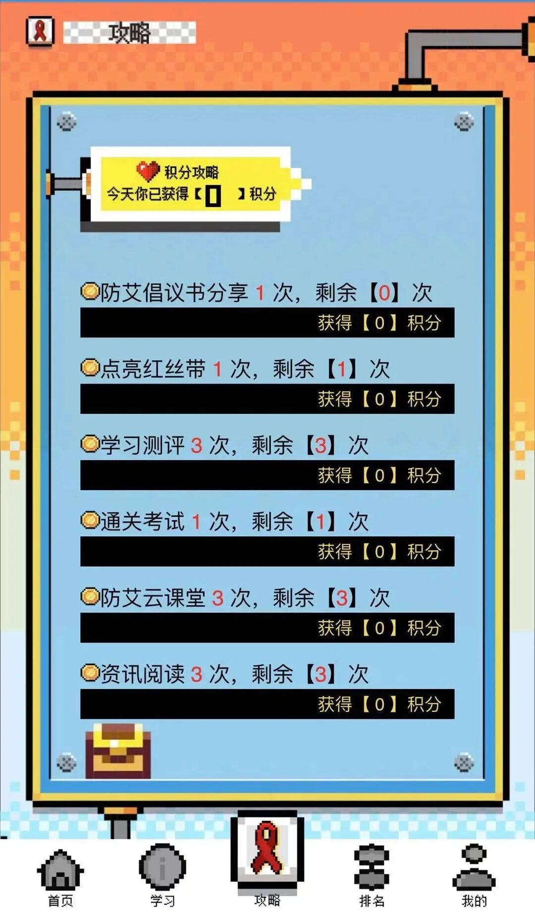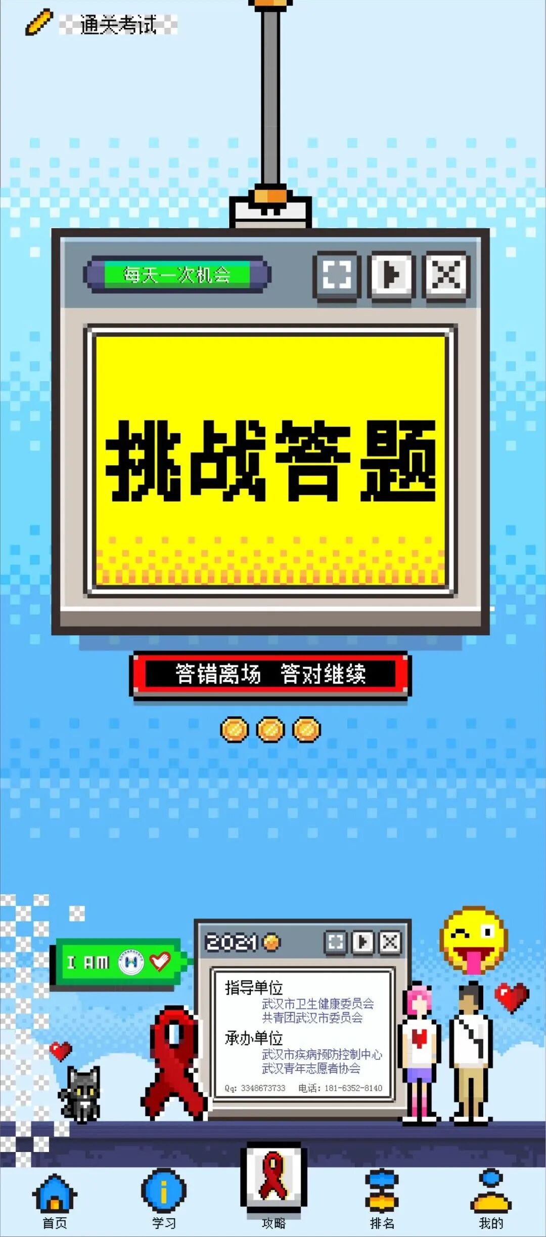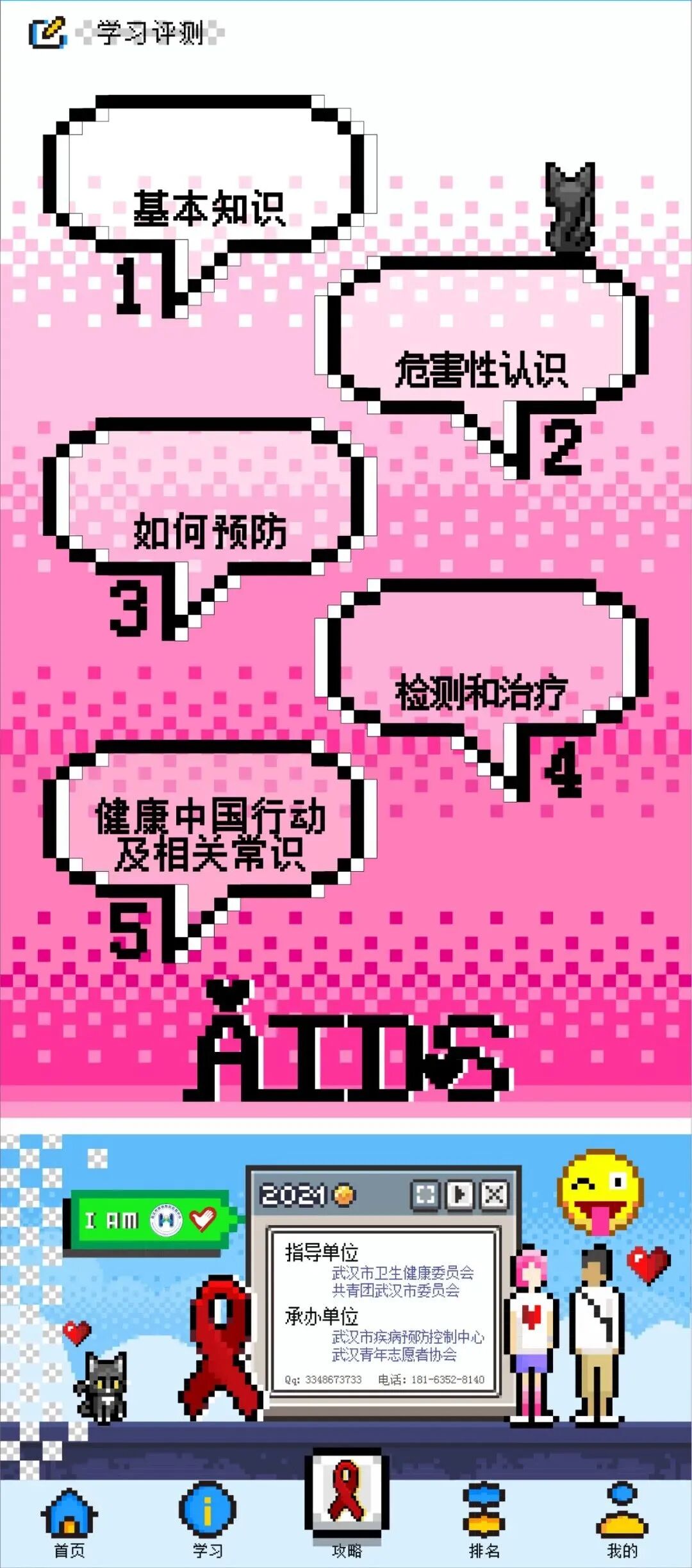 点亮红丝带、学习测评、通关考试