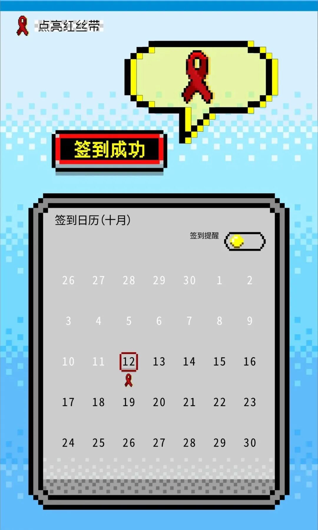 (1)以电子日历方式进行签到,成功签到后显示红丝带标记;