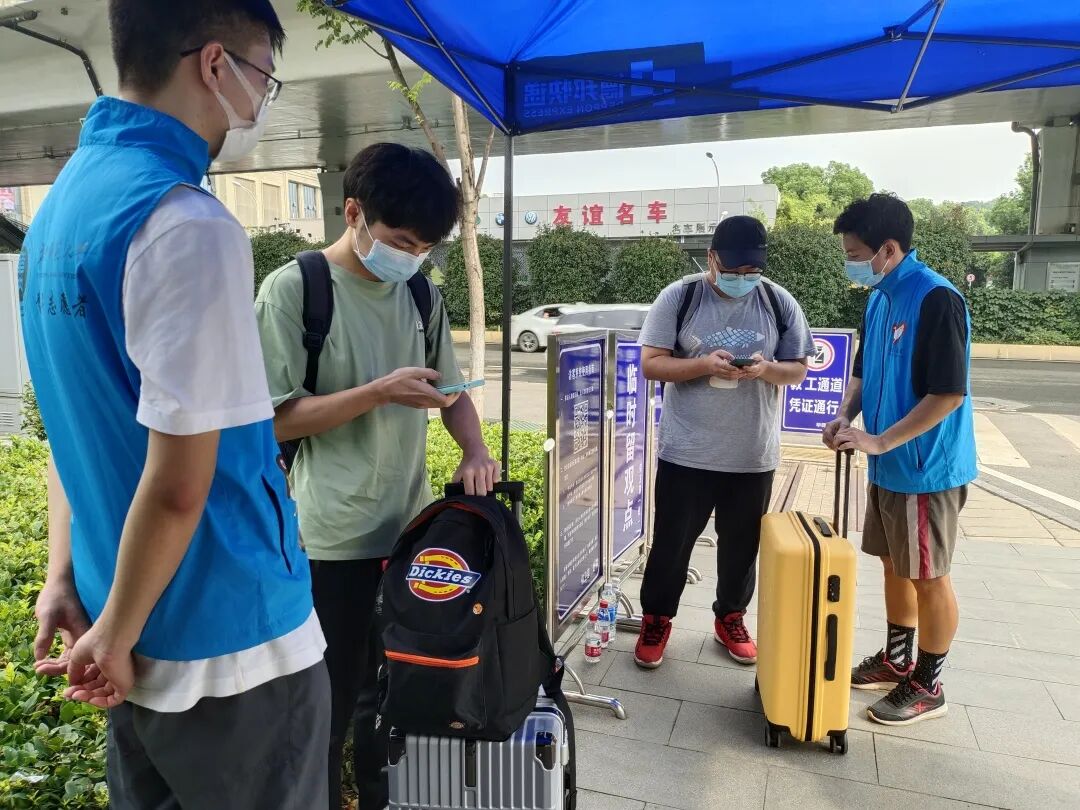 志愿者们逐一查验返校同学