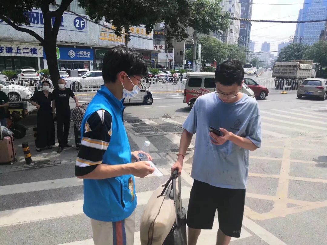参加返校志愿服务活动当天的气温比天气预报还要高,虽然在校门疫情防控查验点处值班工作很辛苦,但我一边坚守岗位一边暗暗鼓励自己“就当再经历一次军训吧”,但这种类似军训的艰辛感很快就在服务和帮助同学的过程中淡去了。看到同学们带着大包小包重返校园,看到组员们一遍遍重复着查验工作,虽然依然暑气蒸腾,但有种不知从何而来的力量鼓舞和激励着我。除了可爱的组员们,保卫处的保安大叔人也特别好。很开心能参加这次志愿活动,为别人服务的感觉真好!