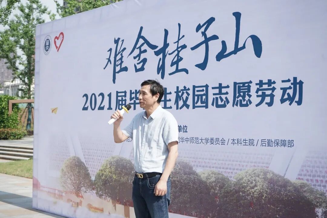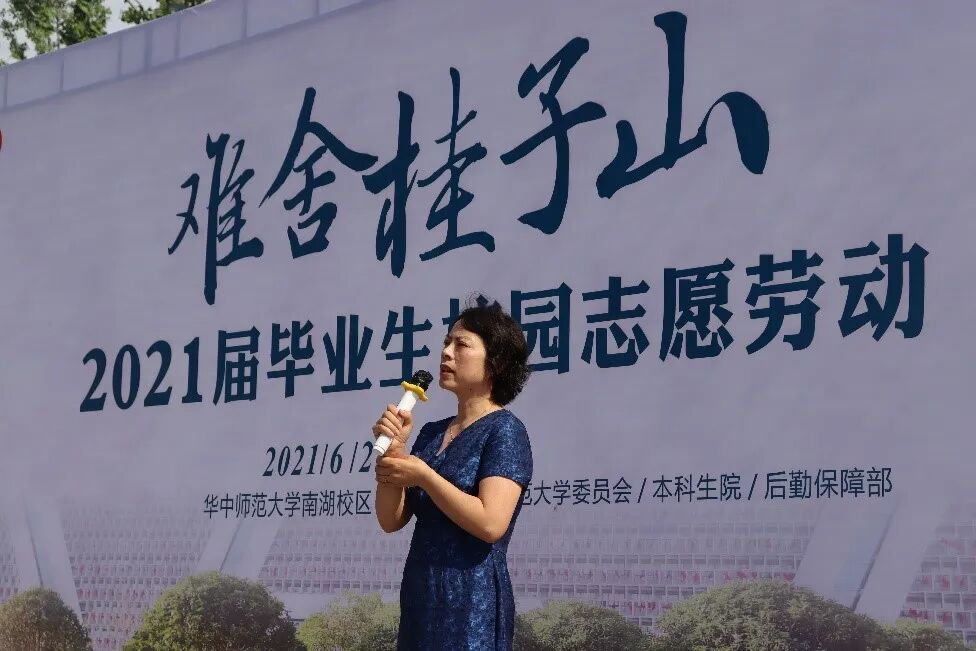 接下来,校团委副书记张静讲话,她表示,在四年的大学生活里,大家已经和校园培养了深厚的感情,在毕业之际,以劳动的形式爱护华师校园是具有纪念意义的,是在华师的最后一课,也是给学弟学妹们的见面礼,并在最后为毕业生送上祝福。