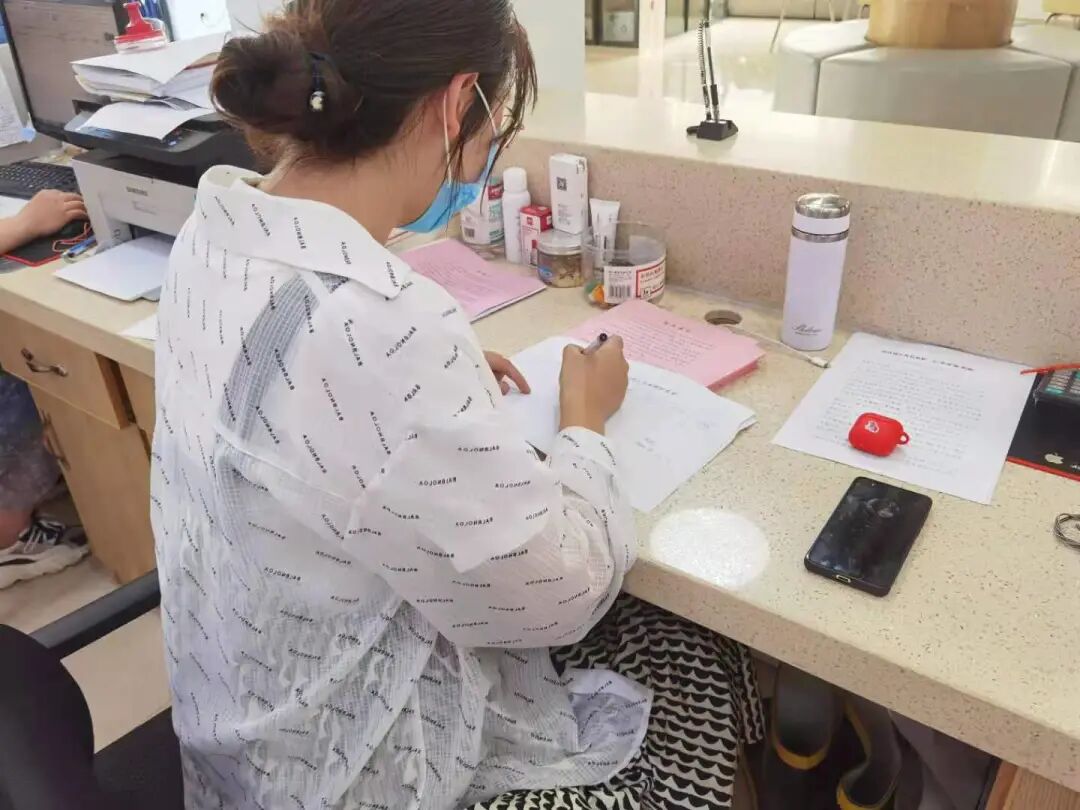 全员核酸检测过程中,许福慧在自己的岗位上认真工作,积极协助医护人员完成工作。作为一名“临危受命”的志愿者,她的工作量很大——领队检测、登记录入信息、现场秩序维护......在炎热的天气中进行紧张繁重的工作,许福慧经常会大汗淋漓。但同时,她也见证了医护人员的尽职尽责、不知疲倦,志愿者伙伴们的爱心与奉献、热情与力量;校领导在深夜的亲切慰问,更是为坚守岗位的志愿者们消除了疲惫、增添了力量。