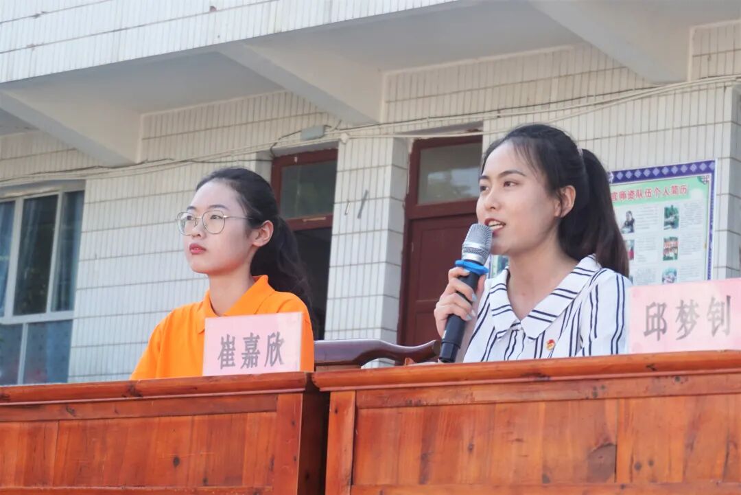 随后,向阳花暑期实践支教队全体队员上台进行自我介绍,向全体师生郑重承诺:全体队员将