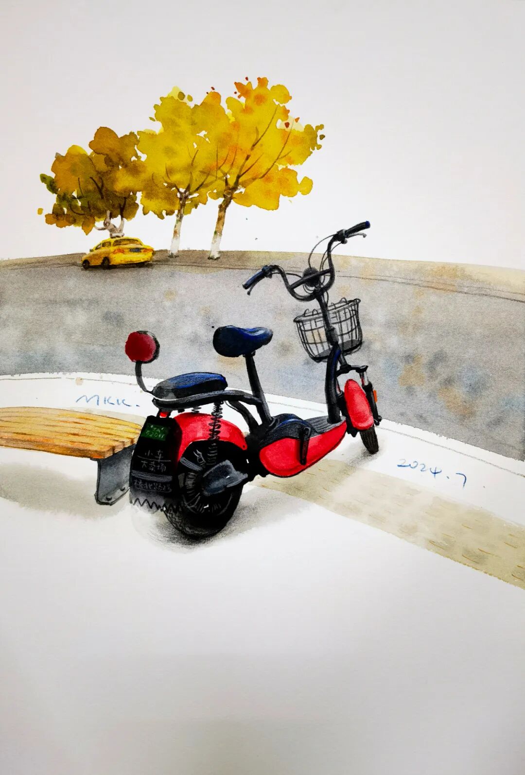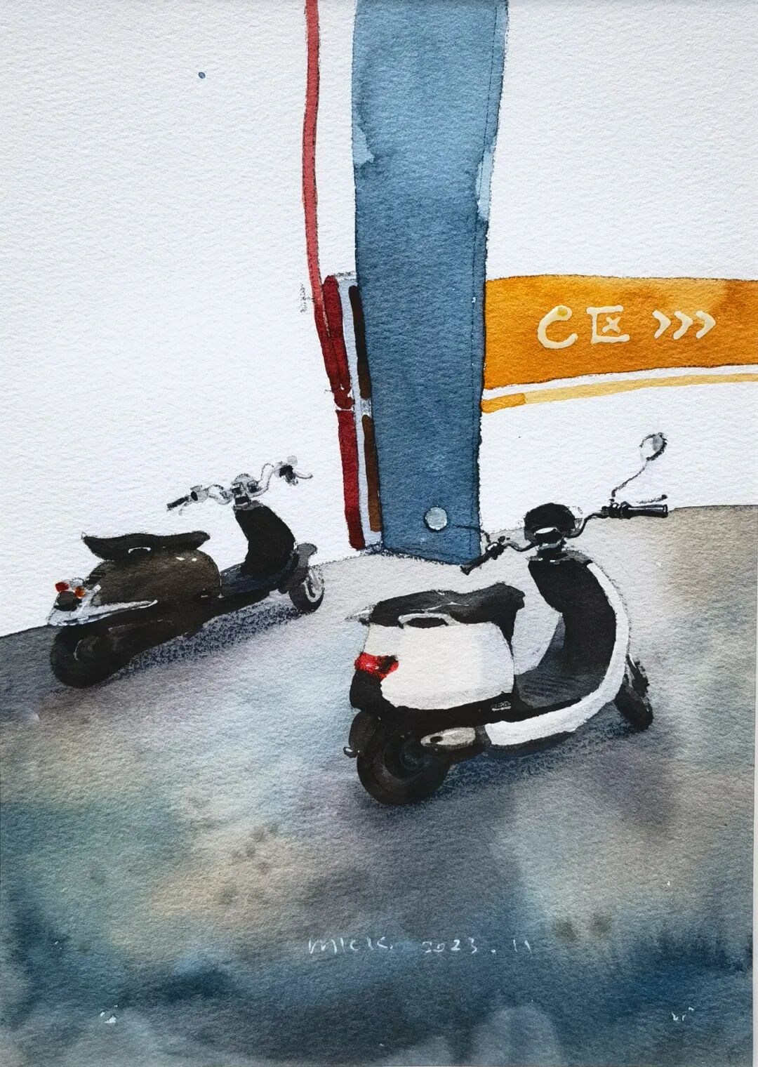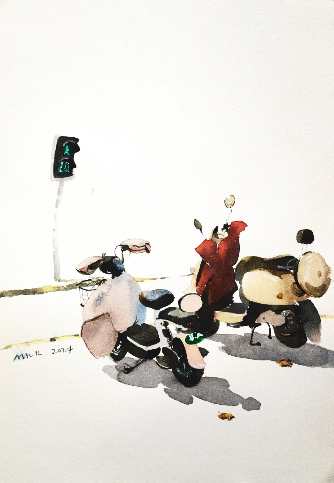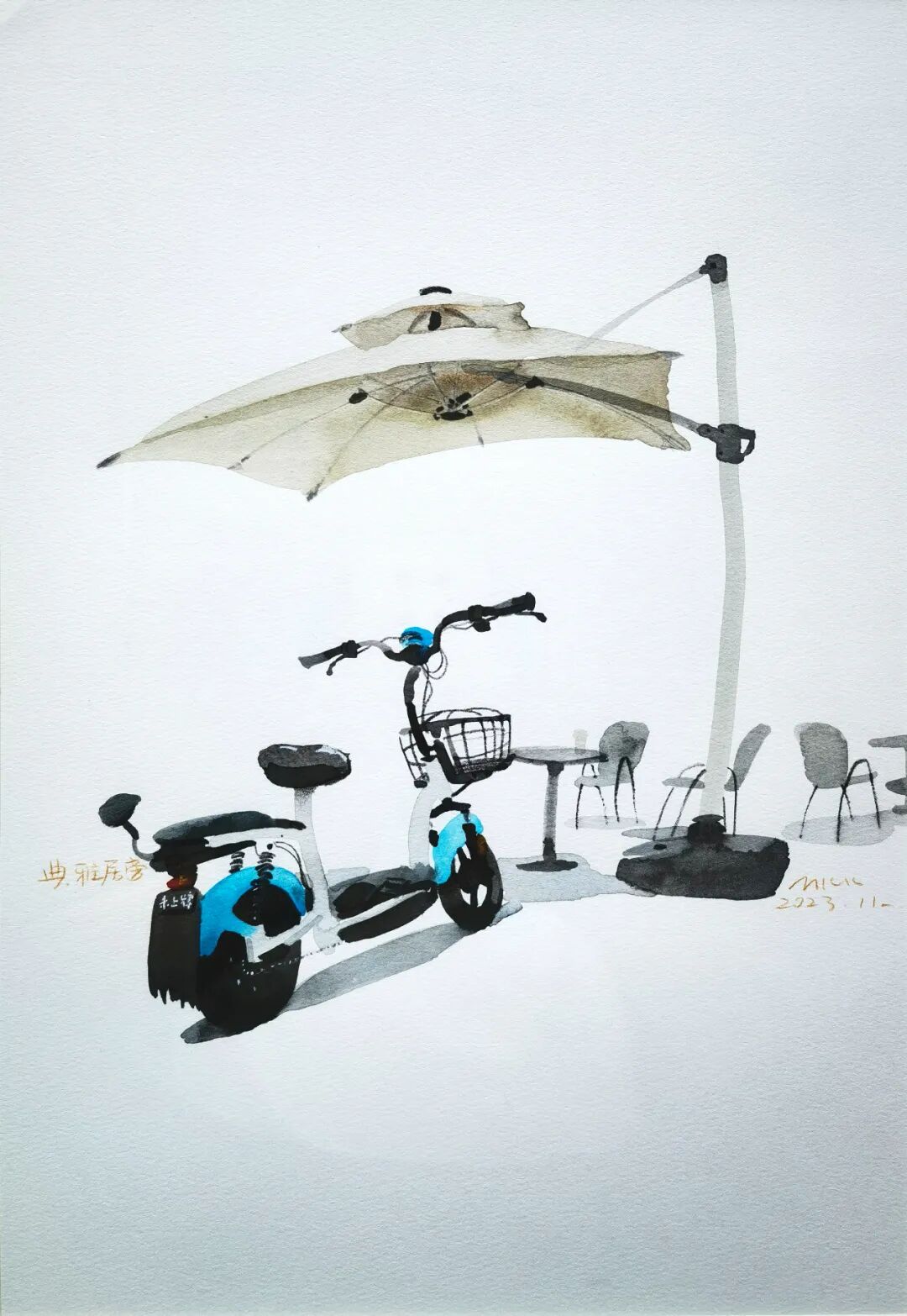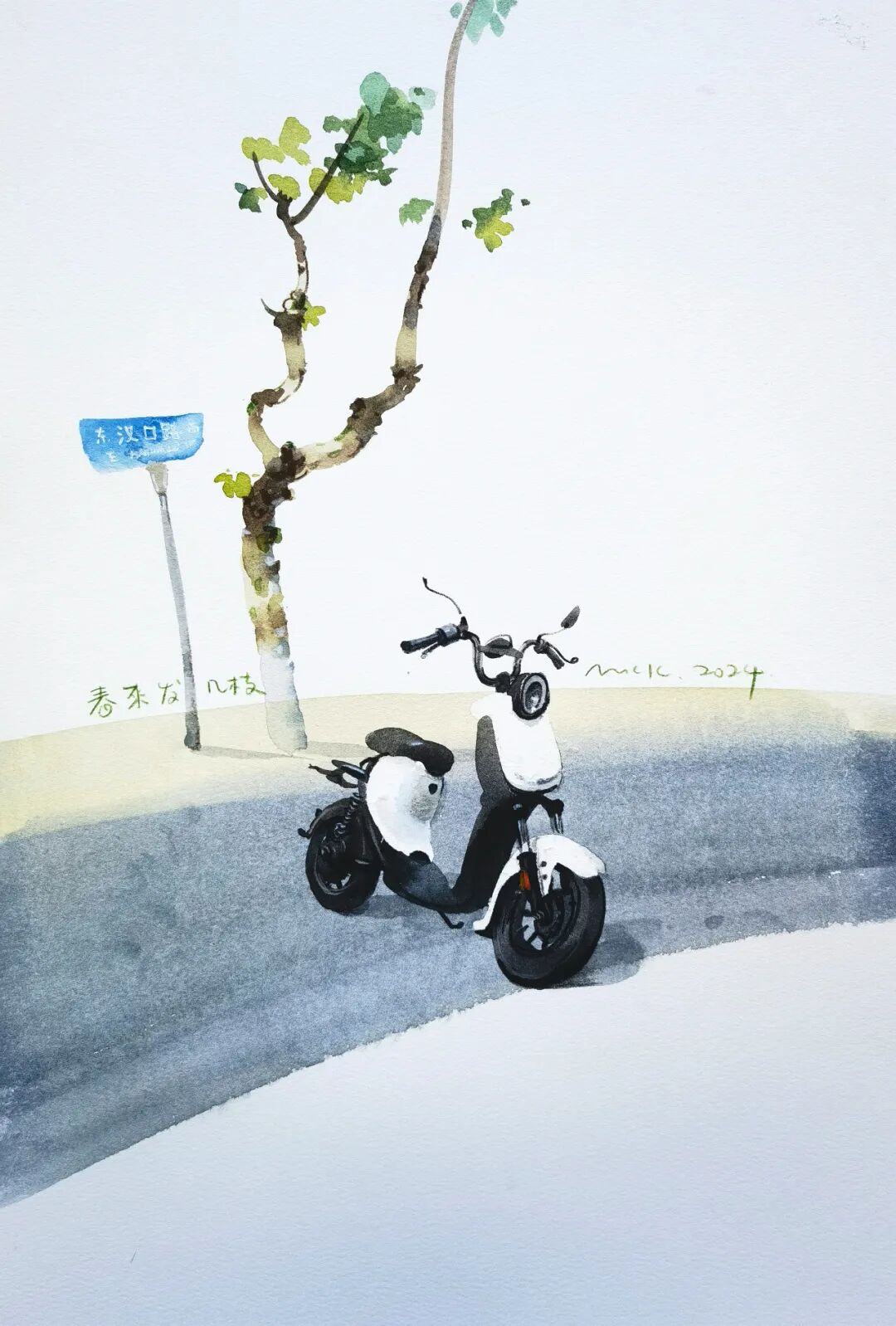 •【未来世界】小时候最爱的小人书是《小灵通漫游未来世界》,我憧憬着在长大后拥有一辆自动驾驶的喷气式汽车和一个可以视频通话的小盒子。现在的我生活在南京,对于小时候的我来说,这个城市的每一个角落都是真正的“未来世界”的样子。有时候我会凭借记忆去把我熟悉的地方画下来,有时候我会跟朋友去街头写生,这些小画中蕴藏了当下的我与我爱的人们生活的线索,我很想把这些小画献给三十年前的自己,让那个少年看看未来真正的模样。(2024)
