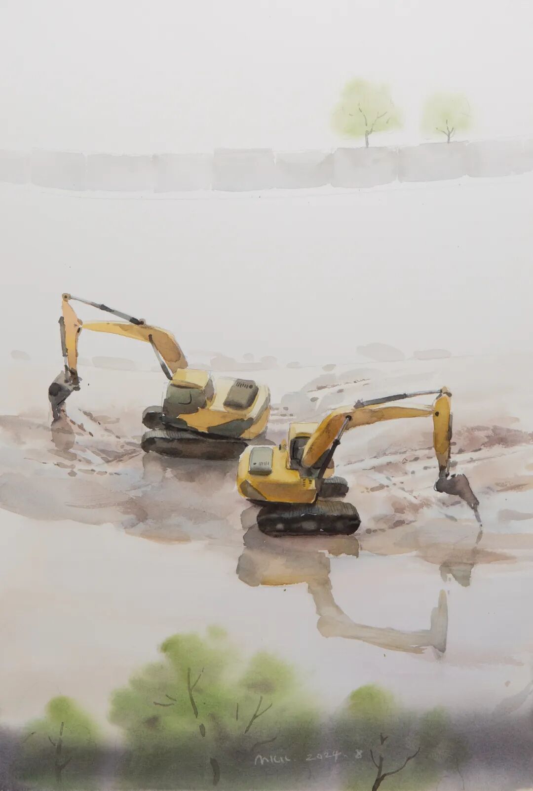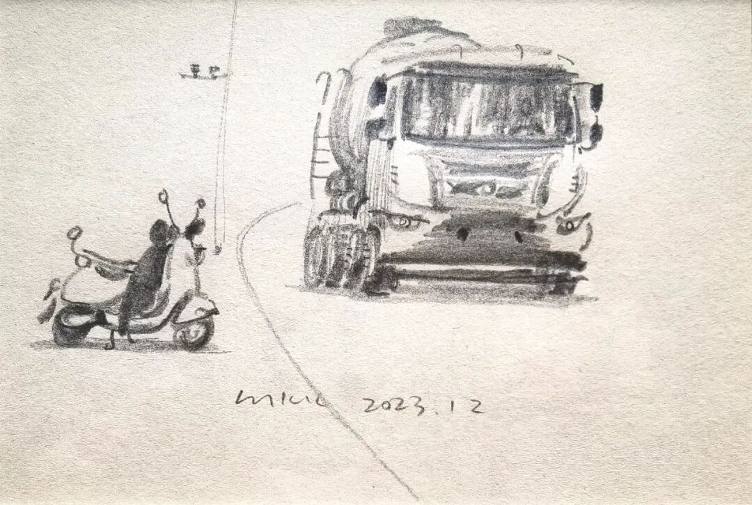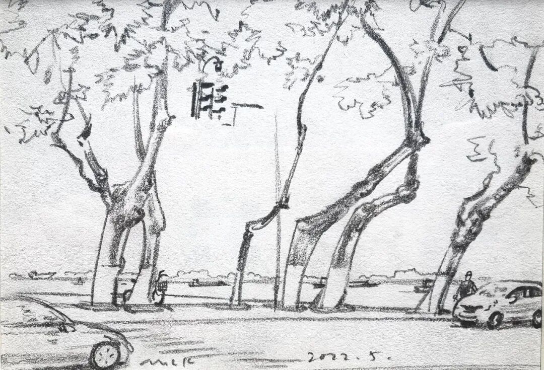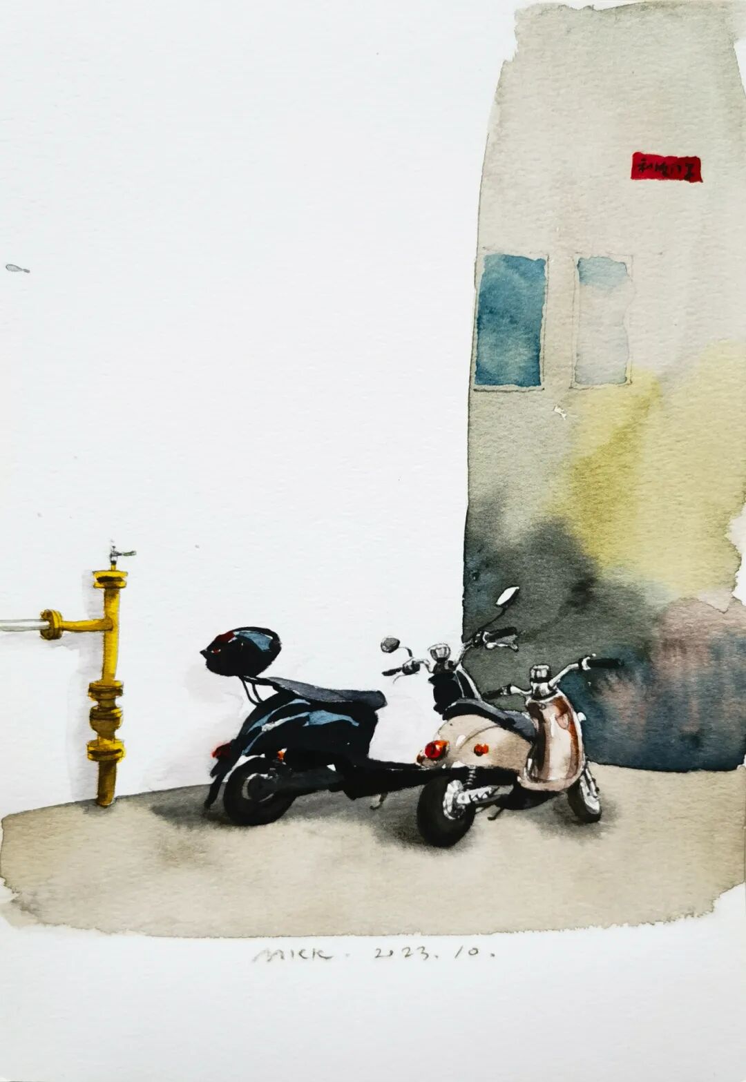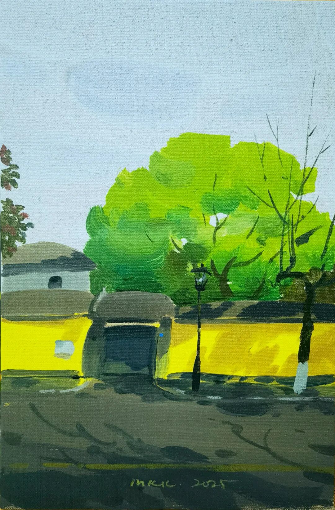 •【未来世界】小时候最爱的小人书是《小灵通漫游未来世界》,我憧憬着在长大后拥有一辆自动驾驶的喷气式汽车和一个可以视频通话的小盒子。现在的我生活在南京,对于小时候的我来说,这个城市的每一个角落都是真正的“未来世界”的样子。有时候我会凭借记忆去把我熟悉的地方画下来,有时候我会跟朋友去街头写生,这些小画中蕴藏了当下的我与我爱的人们生活的线索,我很想把这些小画献给三十年前的自己,让那个少年看看未来真正的模样。(2024)