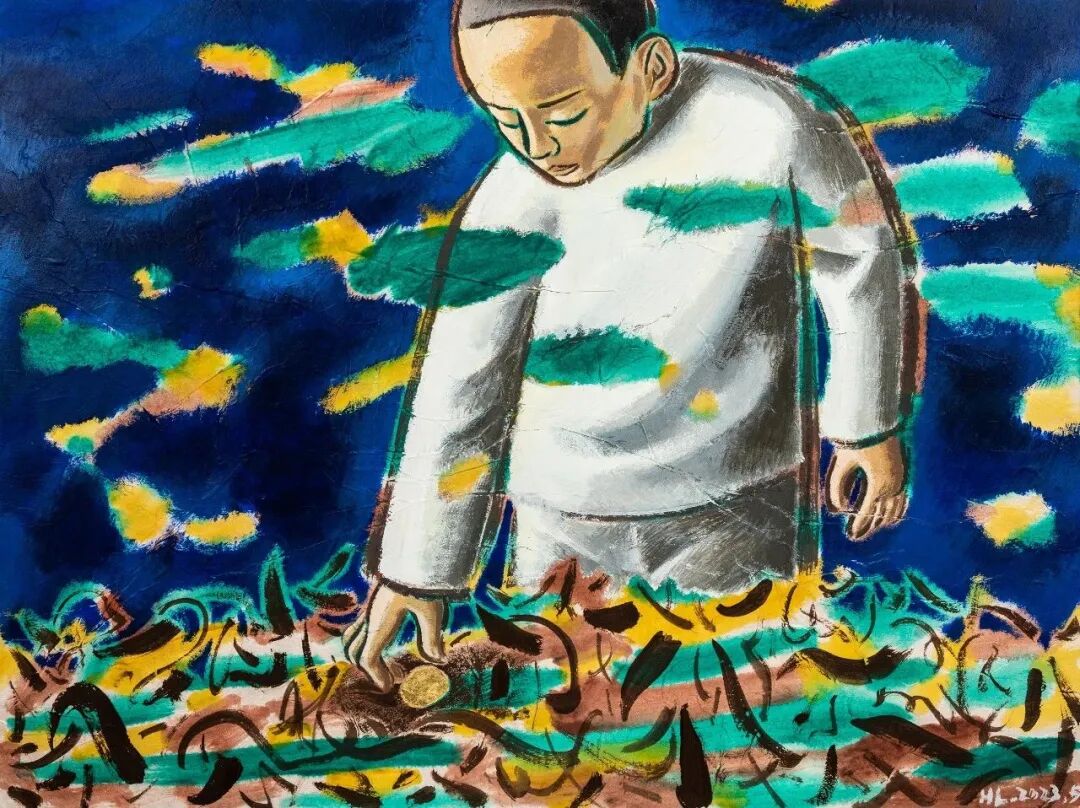 《发光体 5》100×120cm 布面丙烯、金箔、拼贴 2023