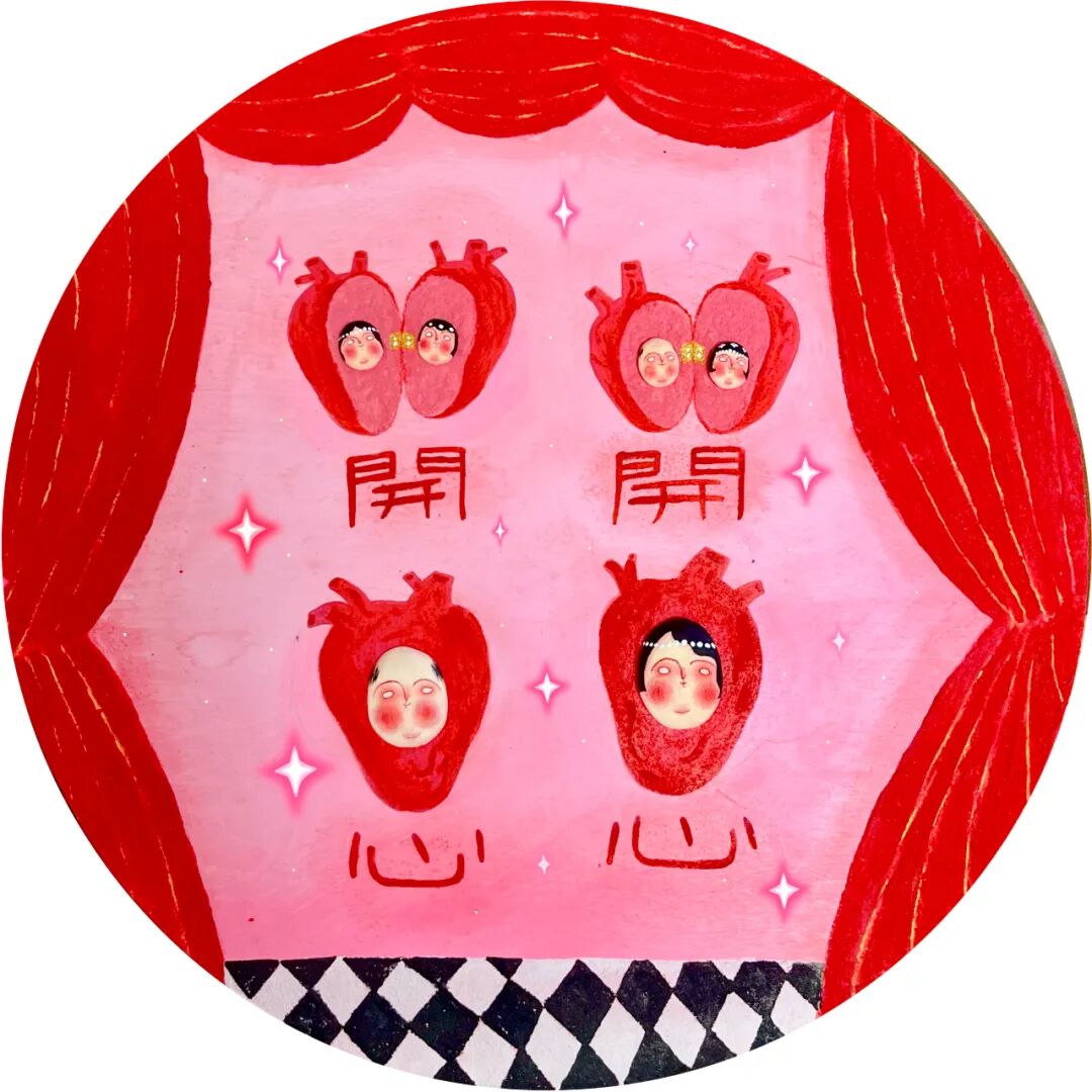「幻想漫游」系列以卡通人物为创作核心,使用鲜艳的色彩和充满想象力的构图,徐20用插画开小玩笑或漫游世界。《开开心心》是真正物理意义上把心切成两半,《旺妻石》《旺夫石》呈现旺妻与旺夫的真谛:如水般变通、如云般包容。《老南京的早晨》《上海腔调》《香港印象》让我仿佛进入了当地citywalk,画报上收录了南京特色小吃、上海的腔调文化、香港的城市记忆,天马行空、如梦似幻,好似一份城市旅行攻略。画家以工笔精心勾勒,每一个人物闲适、生动、充满灵魂。有趣的徐20创造了一个轻松且欢快的高能量场,让我们都被能量滋养,唤醒内心潜藏着的童心。