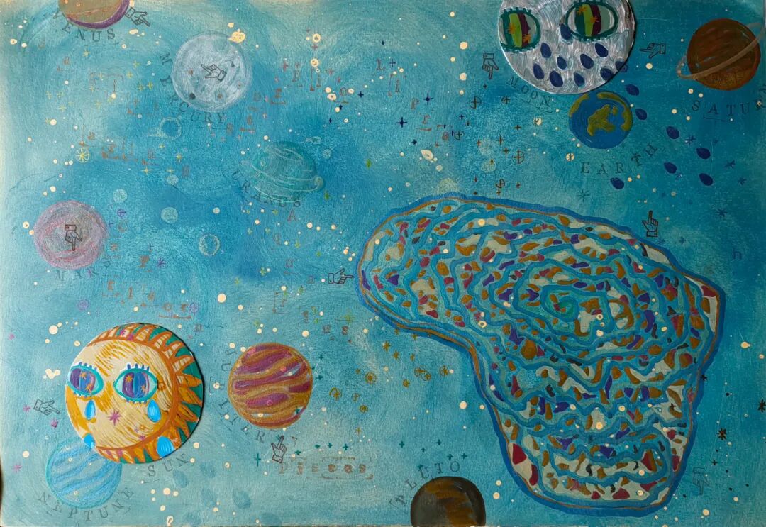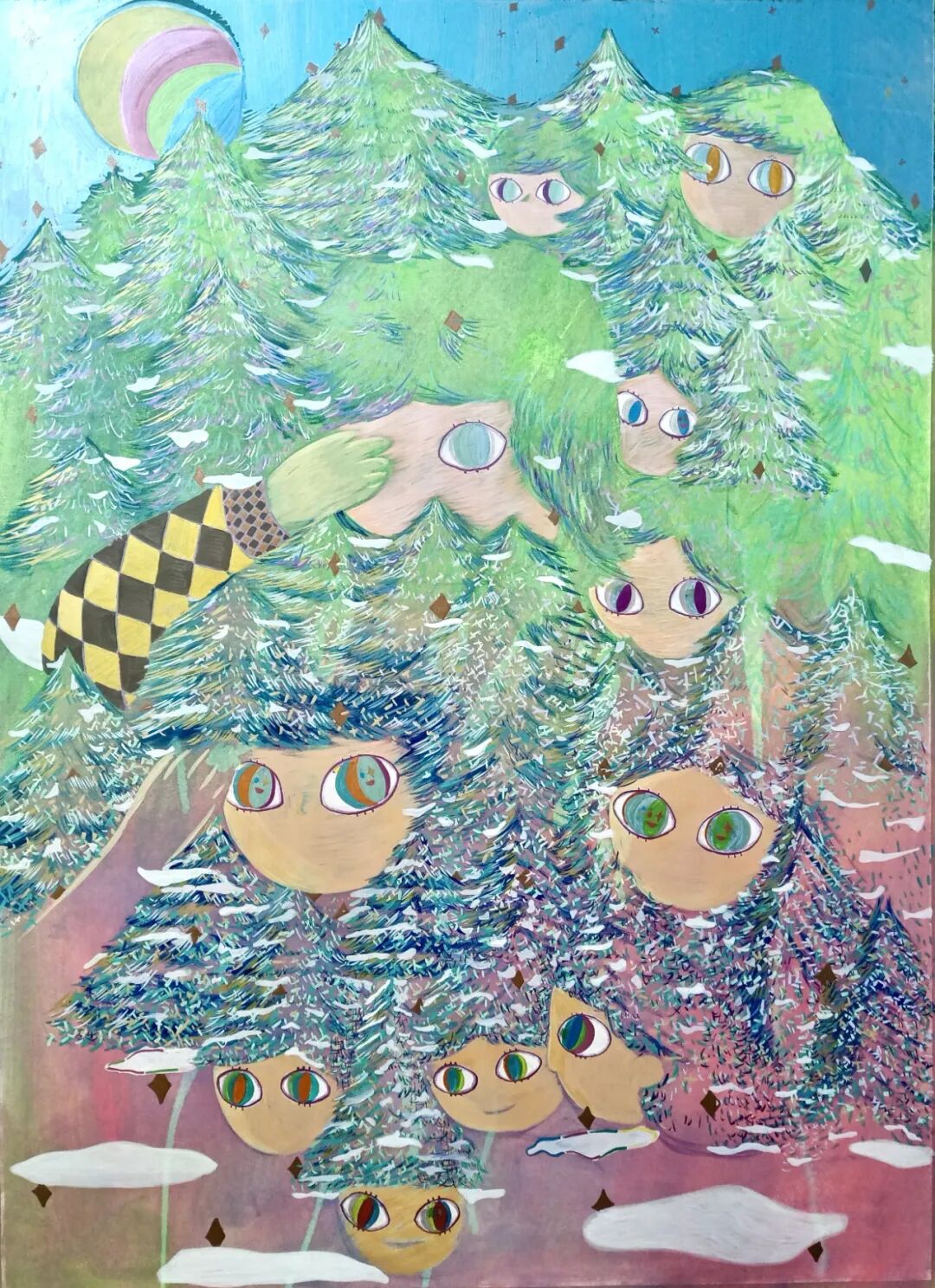 瑜是一个充满爱的“播种人”,因为她的画总是温柔、甜美,充满了诗意。总是能将人们拉回到记忆中最幸福,最浪漫的时刻。孩子们总是会吵嚷着表达自己对美丽事物的喜欢,今年作品中得那些大眼睛的灵感或许就来自他们。那些眼睛好像蕴含着小朋友们充满好奇与期待的眼神,让画面变得更加奇妙且灵动。