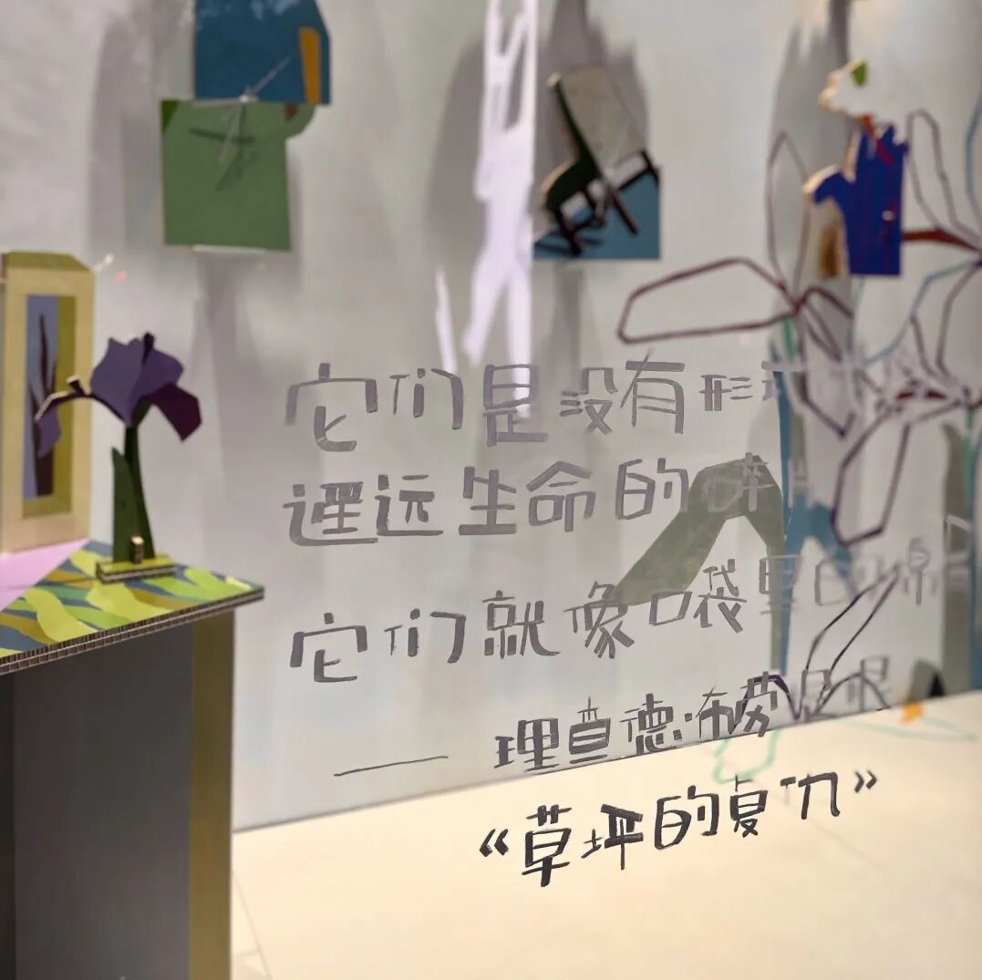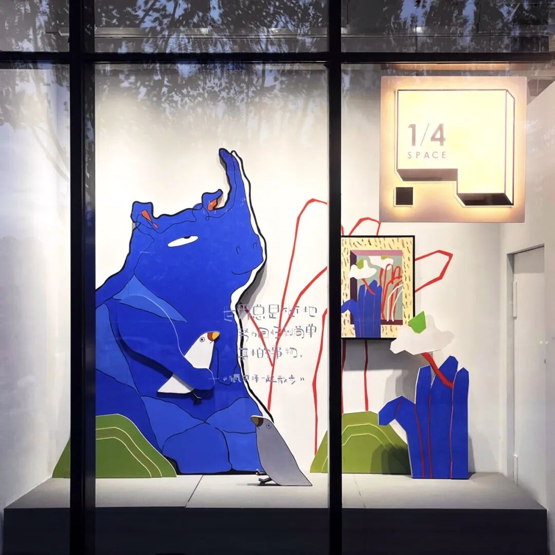 「四分之一·角」艺术项目以橱窗的形式展示,使艺术作品与观者的互动变得轻松,赋予艺术与生活之间的联系。本次展览中,张哲将感知到的瞬间压缩进薄薄的画布,画面中的每个部分都为了整体的协调而精心构建。在这次装置实验中,他试图将这些生活碎片还原到现实生活中,以时光叙事的方式呈现。三个橱窗空间分别代表未来、过去和当下,作为时光的切片独立存在,画面中的元素从墙面延伸到空间,使平面作品变得立体化。