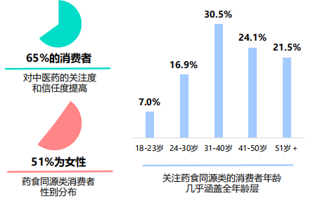 在中医药领域,随着“健康中国”战略的推进,中医药的传承创新发展迎来新机遇。国家卫生健康委将106种中药材纳入食药目录后,催生出旺盛的药食同源赛道,年轻人成为养生茶饮、药膳、健康零食等中医养生市场的生力军。一些药企推出的中药养生茶,采用科学配方,将传统中药材与现代工艺相结合,既保留了中药的功效,又方便消费者饮用。