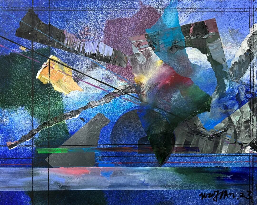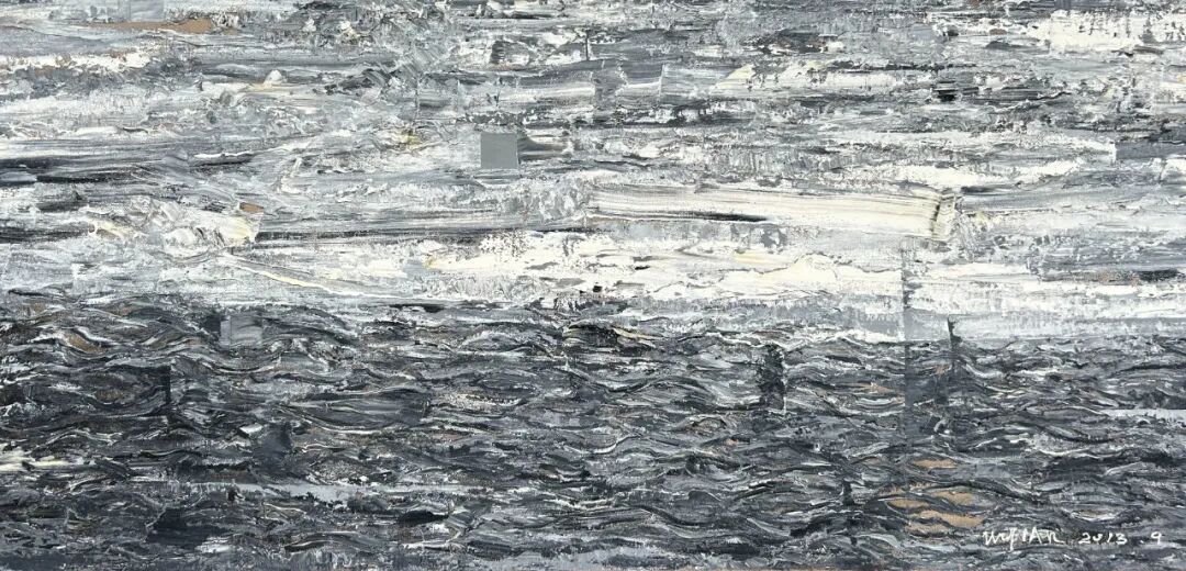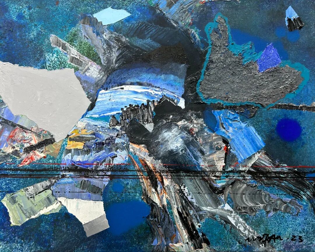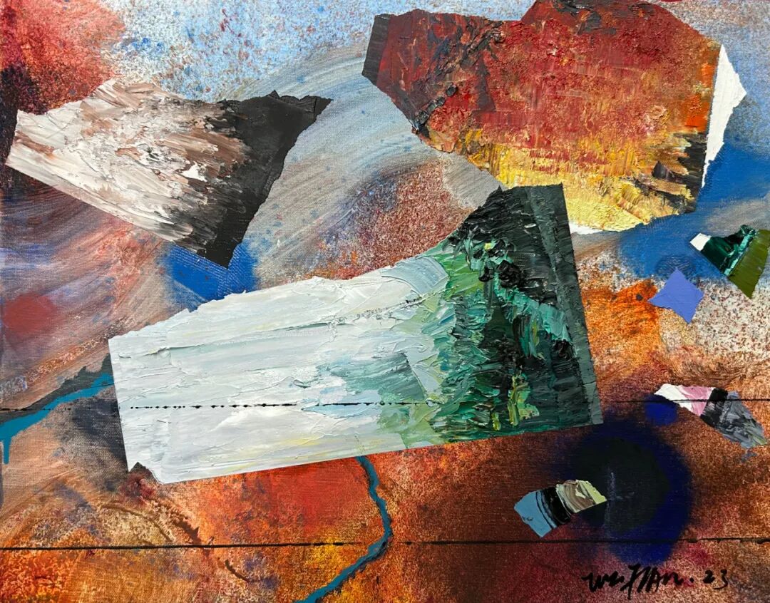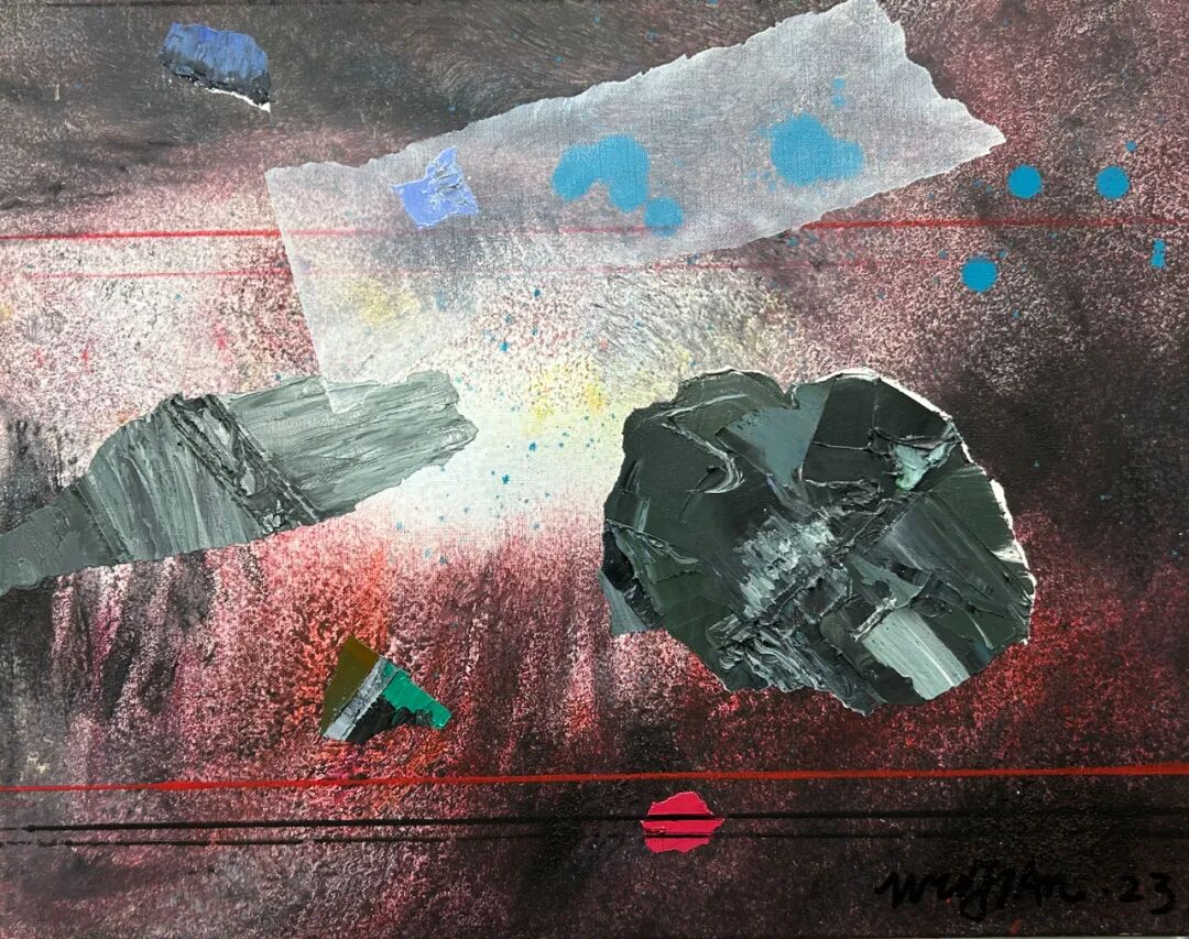 这是吴翦对于自己的研究与探讨,也是古典与当代的探索。他将对宇宙的未知与探索,就像一个徒步旅行的游客,将星系与行星作为自己行旅的探索的地点。将沿途“看见的风景”,汇聚于画布之上,有对宇宙中星云、黑洞等天体的想象,也将自己对于古代中国山水画的理解与之结合。而这些正是吴翦画面中无数堆积重叠在一起的那些似陨石,又似太空垃圾的背后,却有着一方山水的景色一样。这或许就是艺术与物理的巧合,那些宇宙磁场、波动,以及宇宙大爆炸的残余能量,同样像是画笔一般在苍茫宇宙中绘制着如《溪山行旅图》一般的画作。在那些星云中总有奇妙的发现。