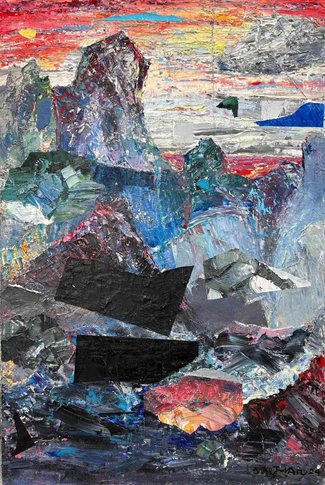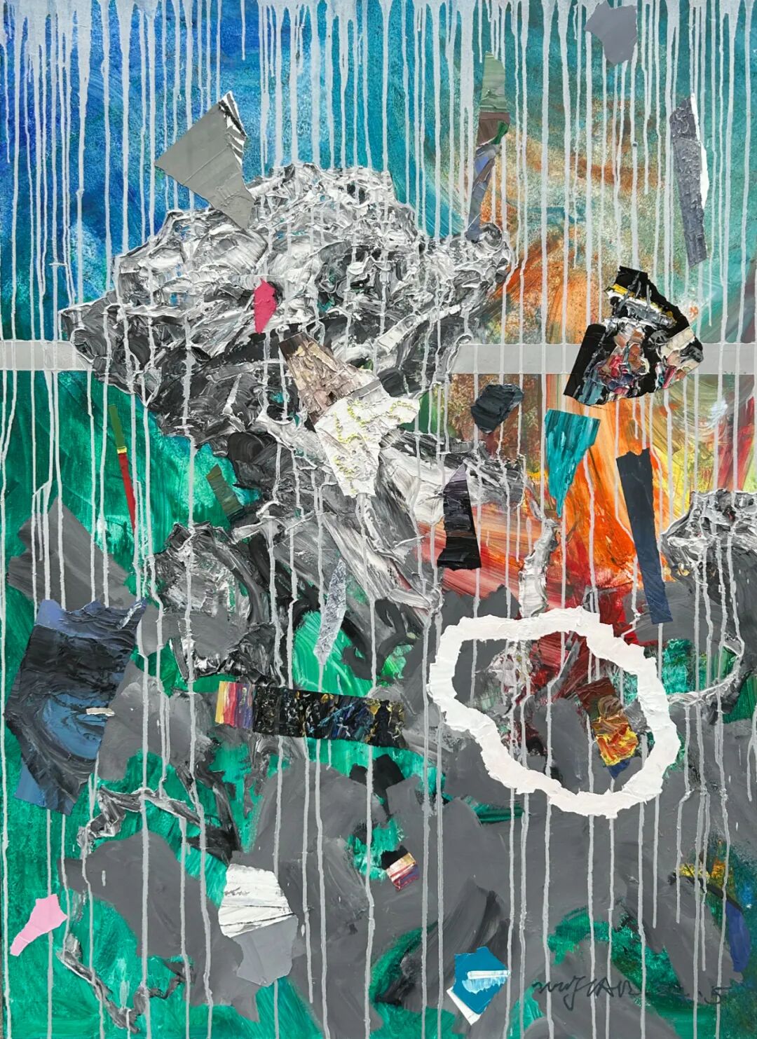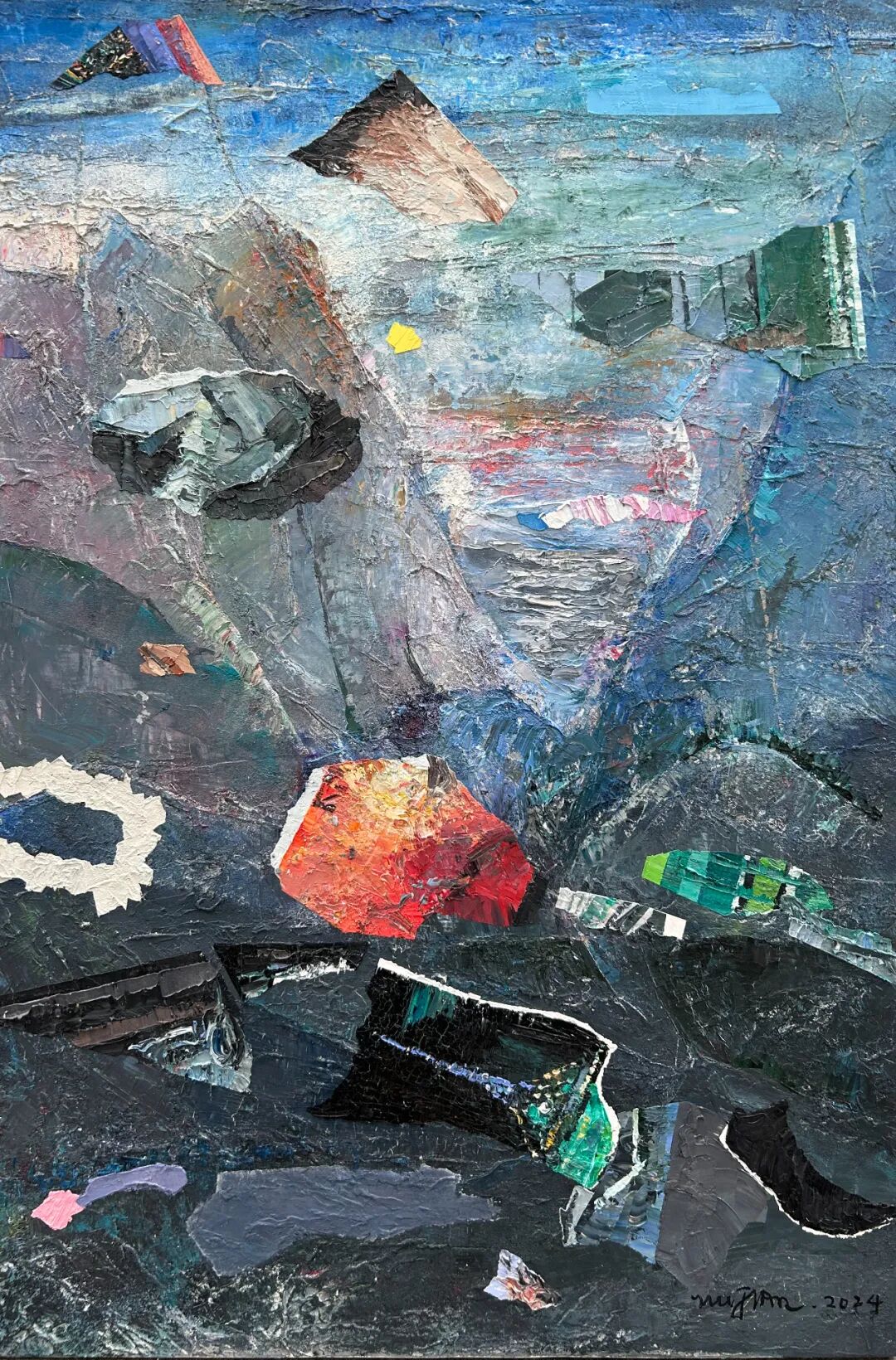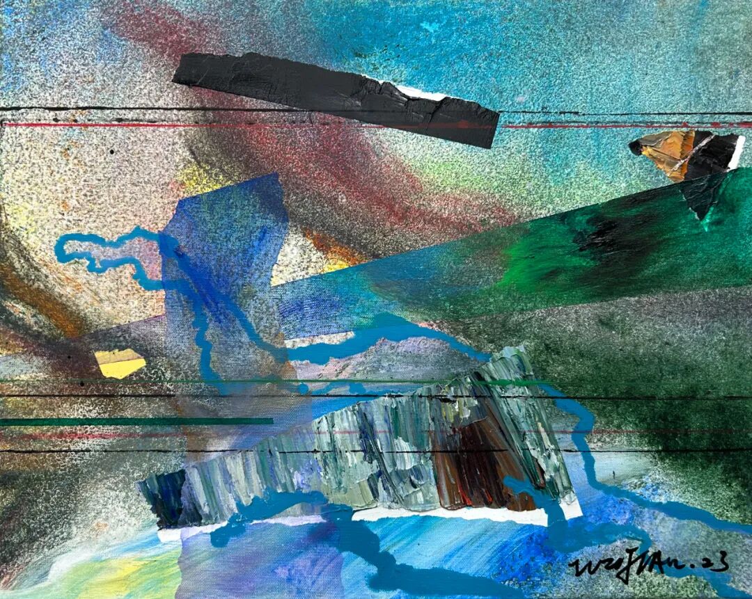 这是吴翦对于自己的研究与探讨,也是古典与当代的探索。他将对宇宙的未知与探索,就像一个徒步旅行的游客,将星系与行星作为自己行旅的探索的地点。将沿途“看见的风景”,汇聚于画布之上,有对宇宙中星云、黑洞等天体的想象,也将自己对于古代中国山水画的理解与之结合。而这些正是吴翦画面中无数堆积重叠在一起的那些似陨石,又似太空垃圾的背后,却有着一方山水的景色一样。这或许就是艺术与物理的巧合,那些宇宙磁场、波动,以及宇宙大爆炸的残余能量,同样像是画笔一般在苍茫宇宙中绘制着如《溪山行旅图》一般的画作。在那些星云中总有奇妙的发现。