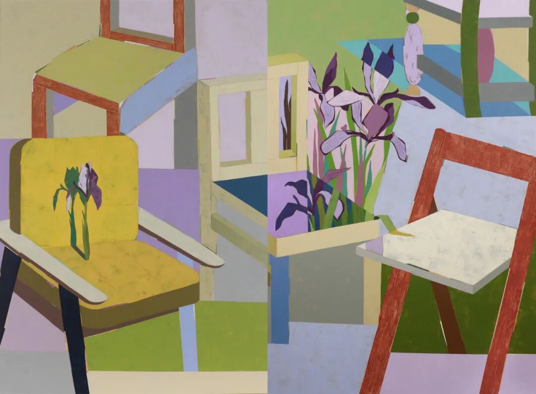 而对于马月明来说,绘画是心灵与自然的共振,她将大自然中的万事万物作为灵感的来源,不管是路边的野花野草,还是云山雾海,还是那夏日的一缕晨光,她都用最细腻的笔触捕捉那些被人忽略掉的细节,进而描绘出她内心世界的斑斓与深邃。张哲依旧在房间里找寻“自己”,发现生活中那些因稀松平常而被人忽视掉的趣味角落,用她自己的绘画语言来呈现更加真诚又有趣的艺术。就如同角落玩偶一般,总未他人重视,却也有自己的小确幸。而刘玥将自己的梦境与写真结合,将画布作为胶片,将心作为快门,用画笔去冲洗这些记忆中可能稍纵即逝的场景。可能这中间也有许多时间她也在寻找,将本身依旧破碎的梦境拼接起来,成为画布上一个个作品。李晓巧将CMYK印刷与银箔结合,将多种媒介结合成为他的绘画语言,也将自己对于记忆的感悟融入自己的作品,将那些碎片化的场景变的可视,但是记忆终究会有淡化遗忘的一天,就如同作品中氤氲的光波一样,成为再不可复制的场景。
